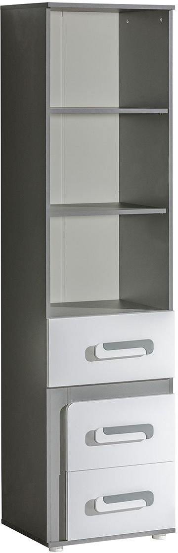 Regal Apetito 05 u boji antracit funkcionalan je i moderan komad namještaja, namijenjen onima koji cijene jednostavan, a elegantan stil. Izrađen je od kvalitetne laminirane iverice debljine 16 mm, što osigurava čvrstoću i dug vijek trajanja. Kombinacija antracitnog korpusa i bijele fronte stvara kontrast koji se lijepo uklapa i u moderno i u klasično uređene prostore. Regal je dizajniran i proizveden u tvornici Domel u Poljskoj, gdje spajaju preciznu obradu s estetskom dovršenošću.