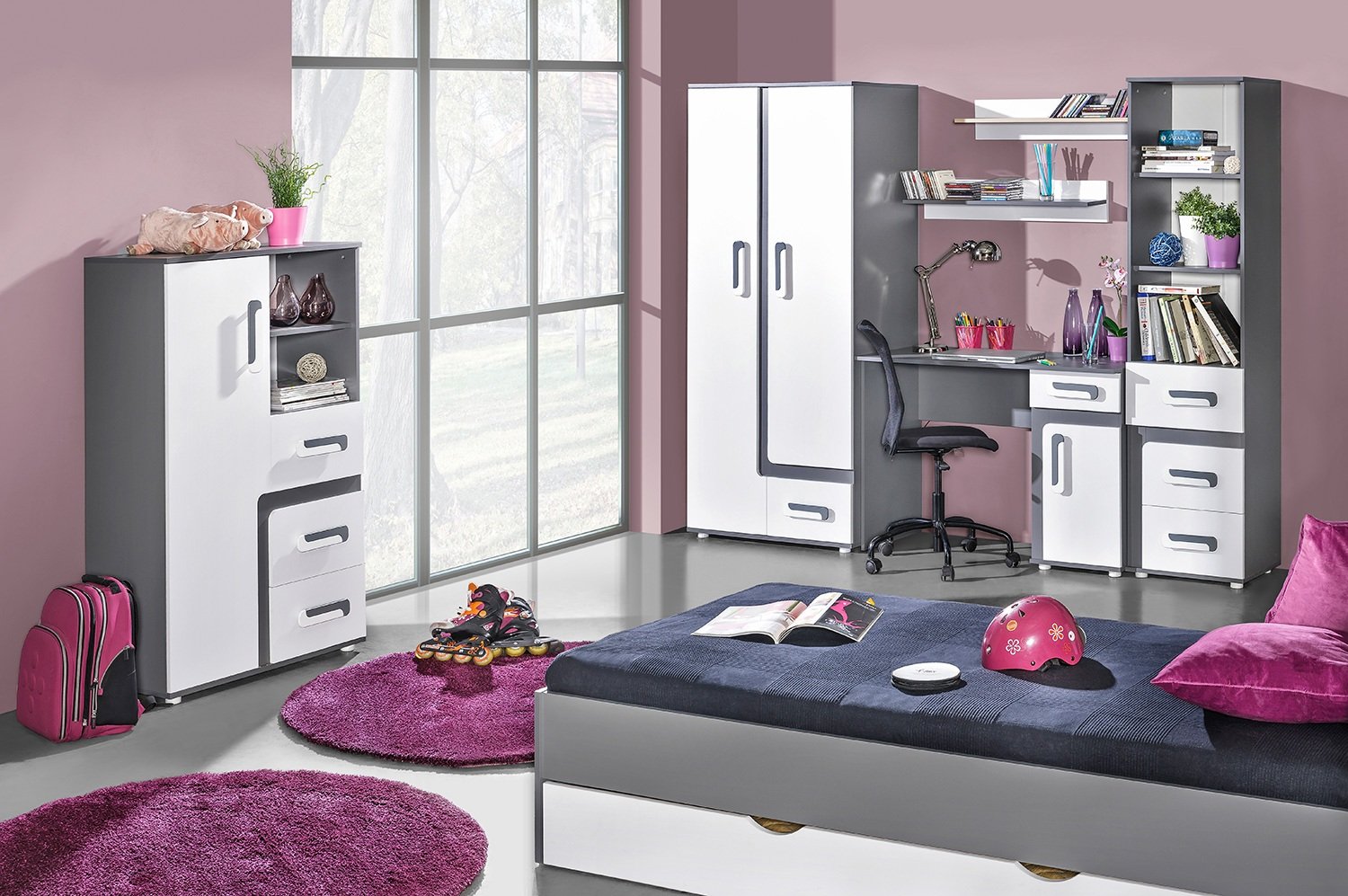Regal Apetito 05 odlikuje se elegantnim antracitnim korpusom koji mu daje dubinu i moderan karakter. Fronte u bijeloj boji stvaraju svjež kontrast i doprinose svjetlijem izgledu prostora. Ručke u kombinaciji bijele i antracit boje nadopunjuju cjelokupan izgled te omogućuju udobno i sigurno otvaranje vrata. Takva kombinacija boja lijepo se slaže s ostalim elementima iz kolekcije Apetito, što omogućuje harmonično uređenje prostora.