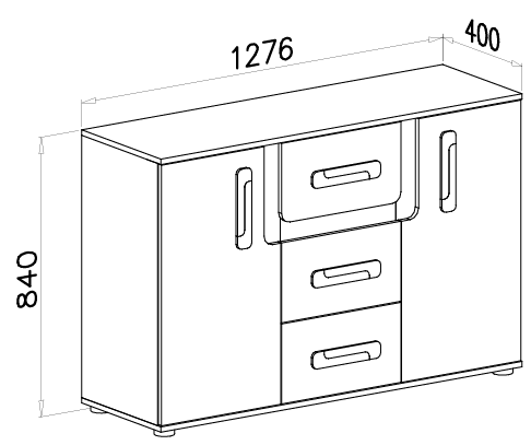 Dimenzije komode iznose 127,6×40×84 cm, što znači da nudi optimalan omjer prostranosti i kompaktne forme. Unutrašnjost je dizajnirana tako da omogućuje pregledno spremanje odjeće, dokumenata ili drugih predmeta koje želite imati pri ruci. Ladice se otvaraju glatko i tiho jer su opremljene kugličnim vodilicama koje osiguravaju pouzdano i dugotrajno funkcioniranje. Stabilna konstrukcija i promišljen raspored polica omogućuju učinkovito korištenje prostora.