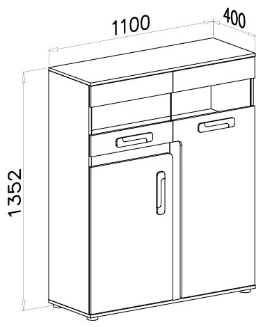 Vitrina mjeri 110×40×135,2 cm, što osigurava dovoljno prostora za pohranu različitih predmeta, od posuđa i čaša do ukrasnih elemenata ili knjiga. Raspored unutarnjih polica omogućuje preglednu organizaciju sadržaja. Ugrađene kuglične vodilice na policama osiguravaju glatko i tiho pomicanje, što povećava udobnost pri uporabi. Zbog kompaktnih dimenzija vitrina se dobro pokazuje i u manjim prostorima, gdje je važno učinkovito iskorištavanje površina.