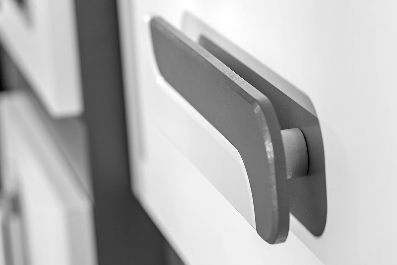 Vitrina je izrađena u tvornici Domel u Poljskoj, gdje je svaki element precizno obrađen. Upotrijebljena iveralna laminirana ploča debljine 16 mm predstavlja pouzdanu osnovu s dobrom otpornošću na ogrebotine i udarce. Svi rubovi su zaštićeni s ABS rubnom trakom debljine 0,5 mm, što sprječava krunjenje i povećava trajnost elementa. Površina je jednostavna za čišćenje, što olakšava održavanje bez posebnih sredstava za čišćenje ili dodatne njege.