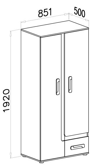 Ormar mjeri 85,1×50×192 cm, pa nudi uravnotežen omjer između prostranosti i kompaktnosti. Pogodan je i za spavaće sobe i za predsoblja, jer ne zauzima previše prostora, a pritom pruža dovoljno korisne unutarnje površine. Unutarnji raspored omogućuje sustavno pohranjivanje – prostor za vješanje odjeće i police za složene komade garderobe. Zbog promišljene visine, ormar je prikladan i za manje prostore s nižim stropom, gdje je važna svaka dodatna površina za pohranu.