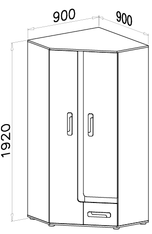 Dimenzije ormara 90×90×192 cm omogućuju optimalno iskorištavanje kuta. Zbog svog oblika idealno je rješenje za manje ili srednje velike sobe, gdje je važan svaki centimetar. U unutrašnjosti ima dovoljno prostora za vješanje odjeće, a police nude pregledno pohranjivanje složenog rublja, kutija ili sezonskih predmeta. Dizajn omogućuje kombiniranje s drugim elementima programa Apetito, pa možete stvoriti savršenu garderobnu kompoziciju prema raspoloživom prostoru.