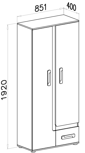 Ormar mjeri 85,1×40×192 cm, što omogućuje optimalan omjer između prostranosti i kompaktnosti. Visina od gotovo dva metra osigurava dovoljno prostora za odjeću, tekstil ili druge predmete koje želite imati nadohvat ruke. Dubina od 40 cm omogućuje da se ormar lijepo prilagodi uz zid, bez prevelikog zauzimanja prostora, što je posebno važno u manjim stanovima.