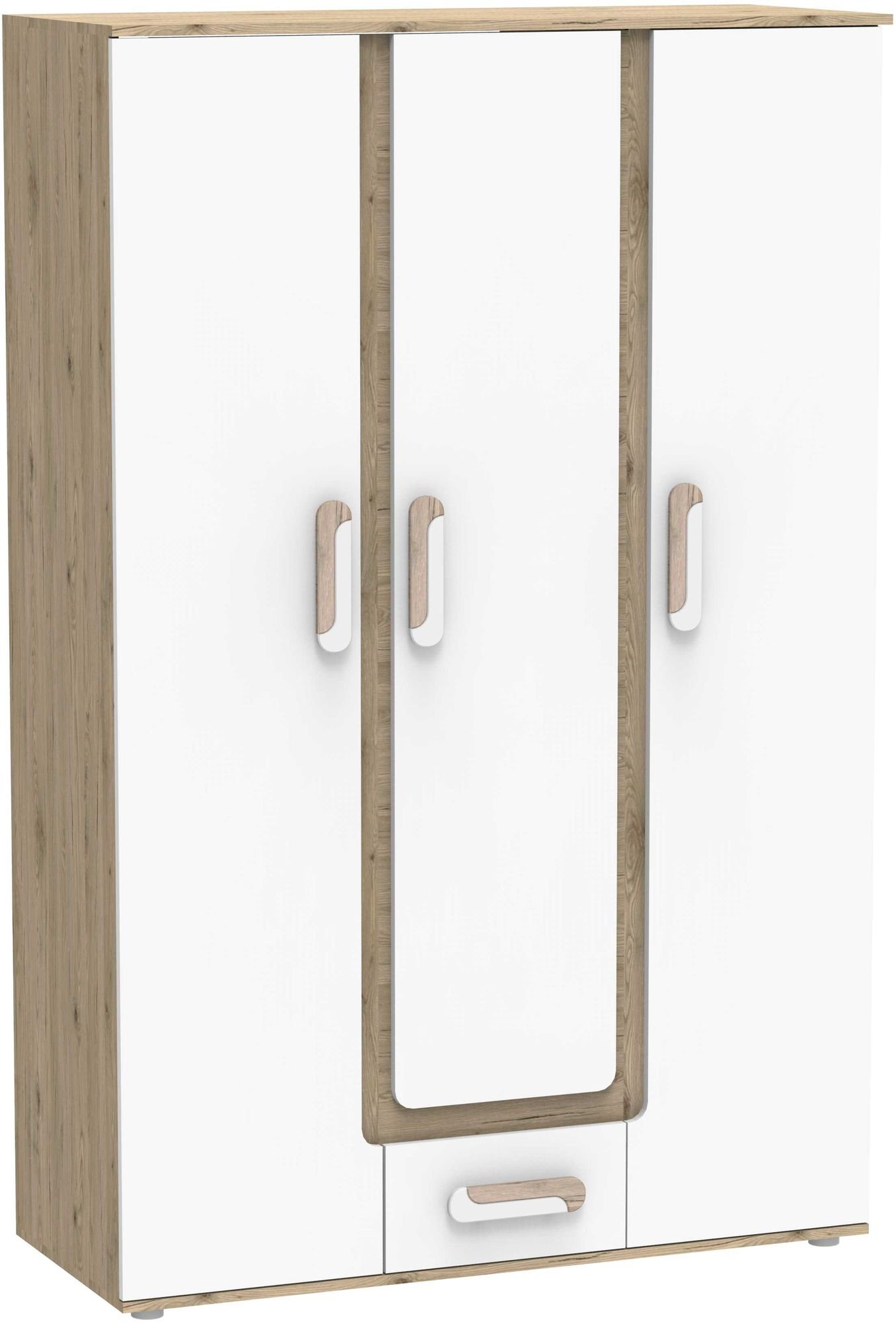Garderobni ormar Apetito 19 u boji svijetlog hrasta i bijele predstavlja harmoničan spoj suvremenog izgleda i praktičnog unutarnjeg rasporeda. Izrađen je u tvornici Domel u Poljskoj, gdje je naglasak na kvaliteti obrade i preciznosti detalja. Zbog uravnoteženog omjera između topline drvenog dekora i svježine bijele boje, ormar se lako uklapa u različite stilove unutarnjeg uređenja – od minimalističkih do klasično oblikovanih spavaćih soba ili predsoblja.