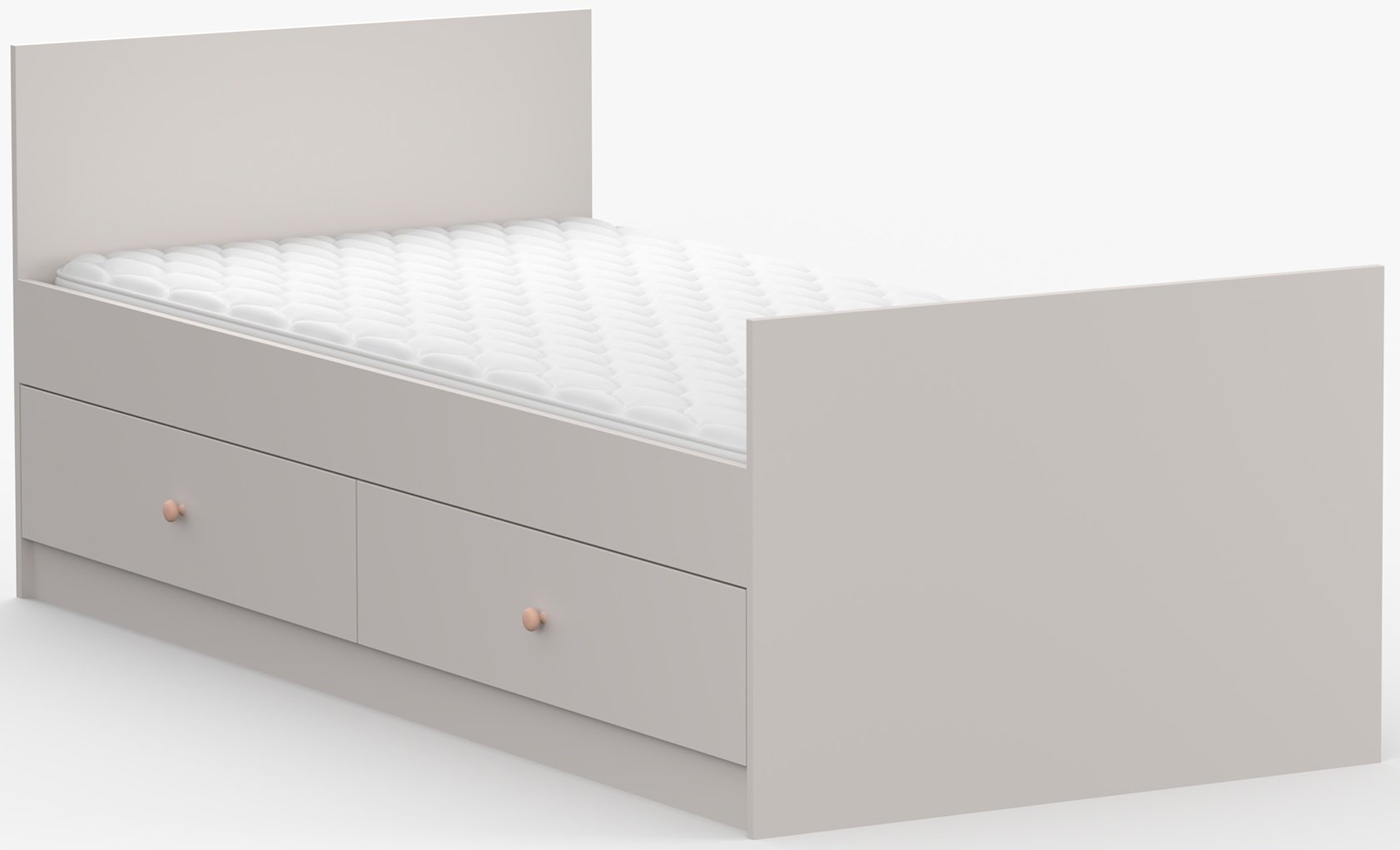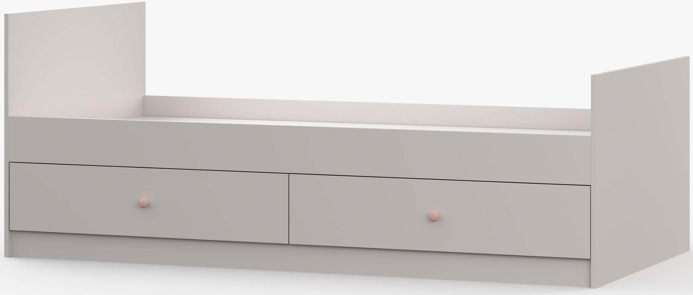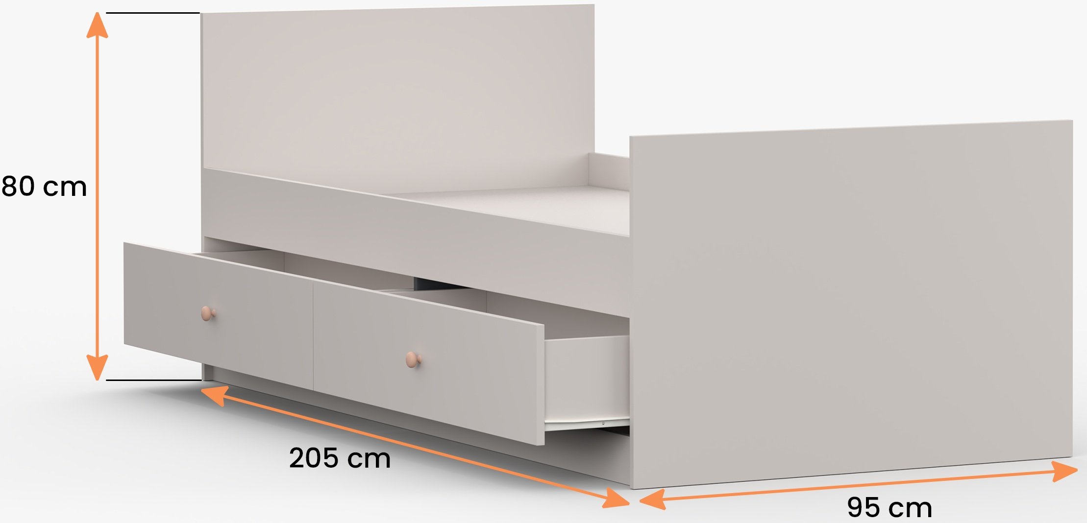 Dječji krevet Olaf u elegantnoj boji kašmira donosi u dječju sobu dašak topline i suvremene mekoće. Njegov promišljeni dizajn, nježne nijanse i kontrastne ručke u ružičastoj i antracitnoj boji stvaraju ugodno okruženje u kojem se dijete osjeća sigurno i opušteno. Krevet je izrađen od kvalitetnih laminiranih ploča, što osigurava čvrstoću, jednostavno čišćenje i dug vijek trajanja. Funkcionalnost upotpunjuje prostrana ladica namijenjena pohranjivanju posteljine ili igračaka, čime soba ostaje uredna i pregledna.