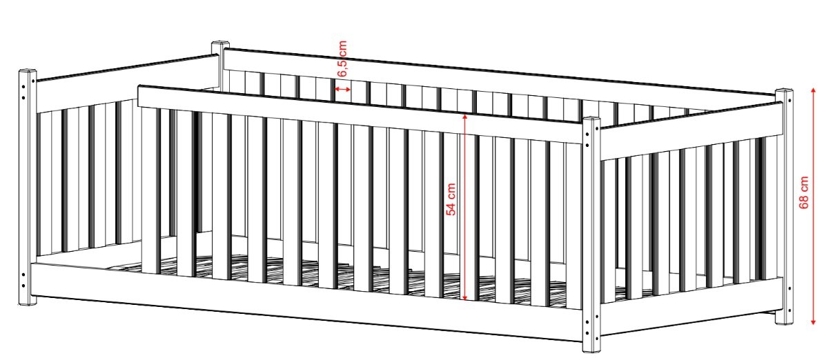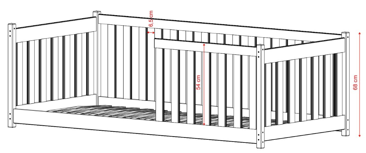 Zaobljeni rubovi krevetića naglašavaju nježan izgled te istovremeno smanjuju rizik od mogućih ozljeda djeteta tijekom igre. Drvena ograda oko krevetića pruža dodatnu zaštitu i sprječava pad s kreveta tijekom sna.