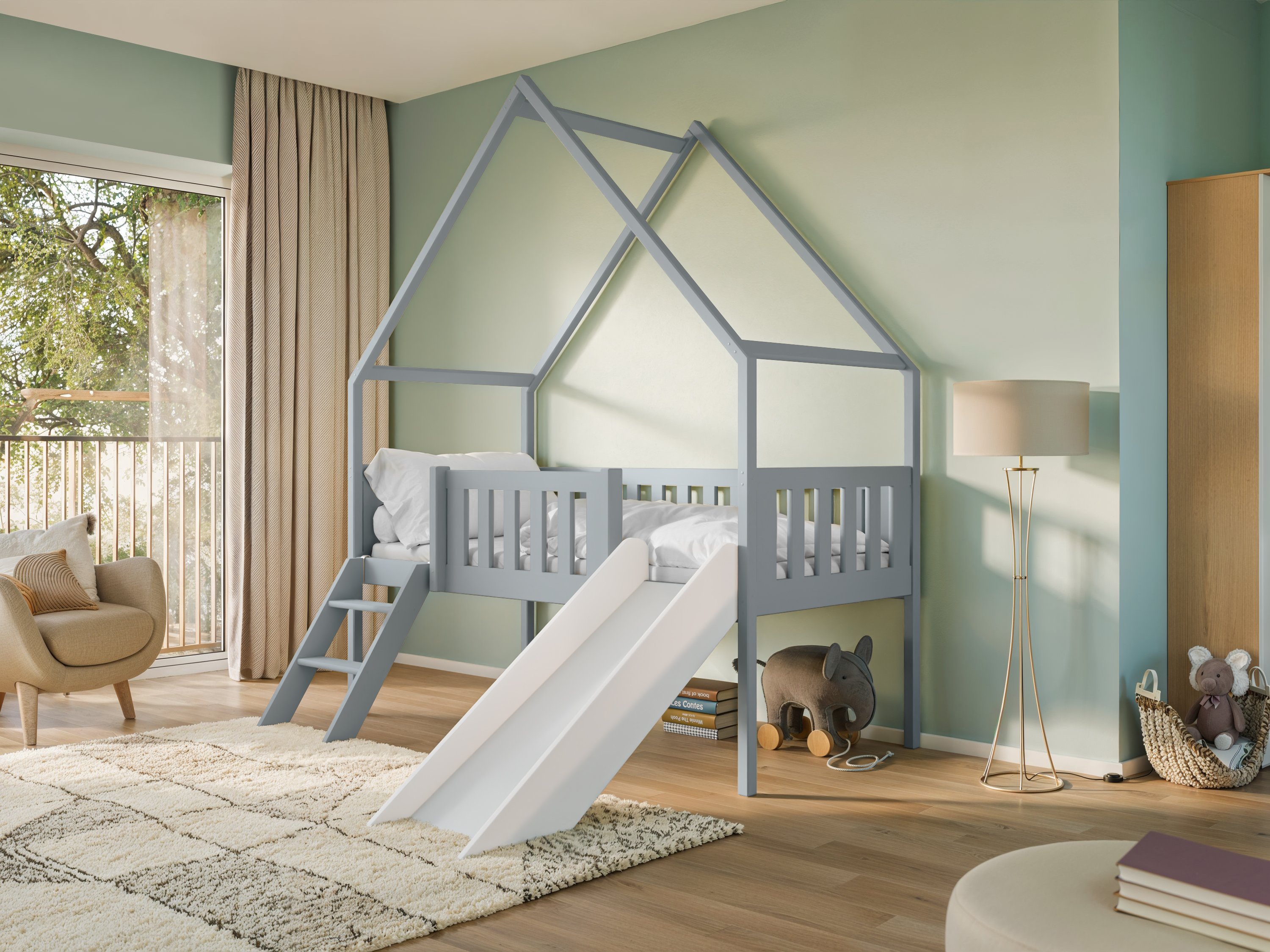 Če iščete otroško posteljo, ki združuje varnost, trajnost in estetski dizajn, je Otroška postelja hiška s toboganom Angel prava izbira za vas. Z nevtralno sivo barvo in privlačno zasnovo bo ta postelja zagotovo postala priljubljen del otroške sobe. Ne zamudite priložnosti, da svojemu otroku podarite posteljo, ki je več kot le prostor za spanje, temveč tudi svet, kjer se lahko igra in sanja.