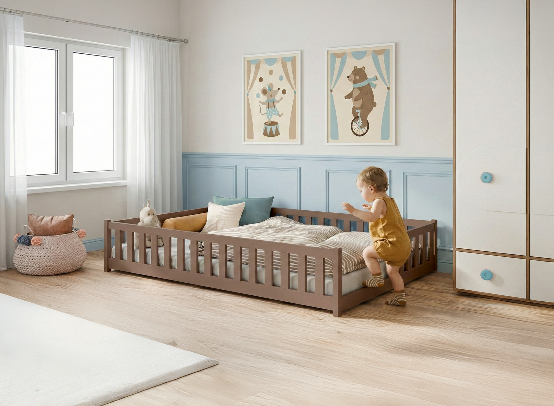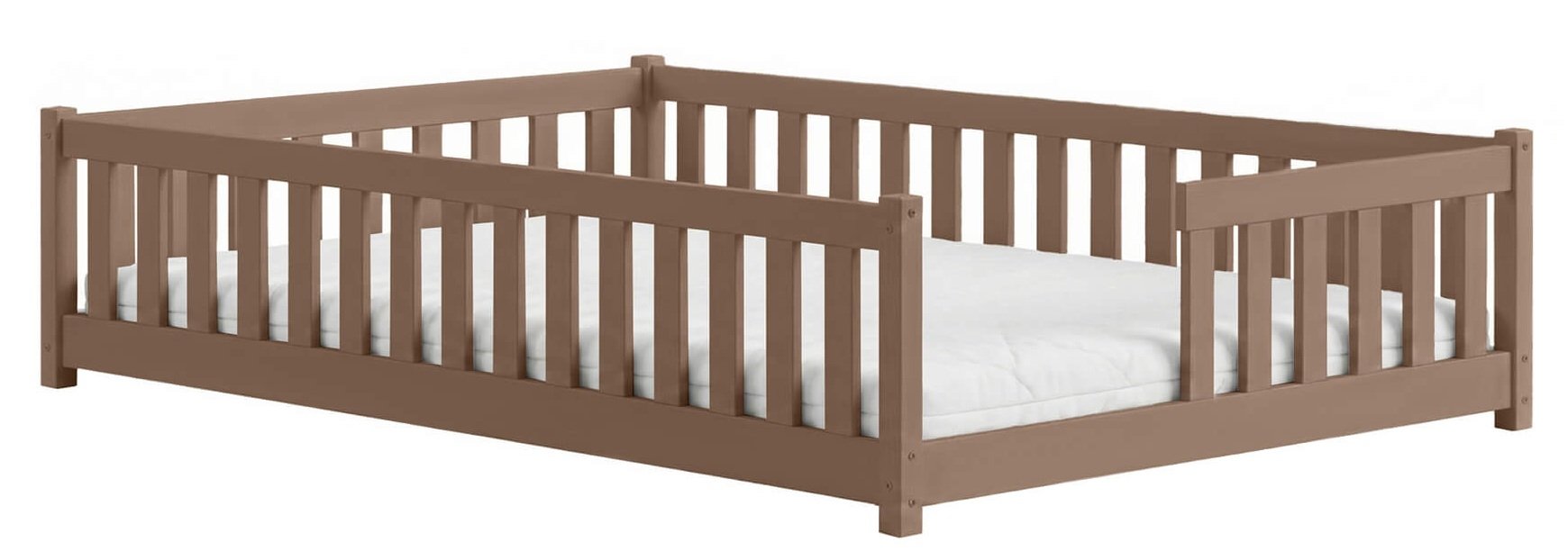Model Levi dostupan je u više varijanti boja – od klasične bijele i prirodnog bora do elegantnih tonova poput grafitne, sive, mliječno čokoladne, tamno čokoladne, cimetne, kašmir i maslinaste. Takva paleta omogućuje da se krevet lako uklopi u različite stilove interijera, bilo minimalističke, skandinavske ili rustikalne. Površina drva glatko je obrađena i zaštićena sigurnim premazom prikladnim za dječje sobe, što osigurava ugodan dodir i jednostavno čišćenje.