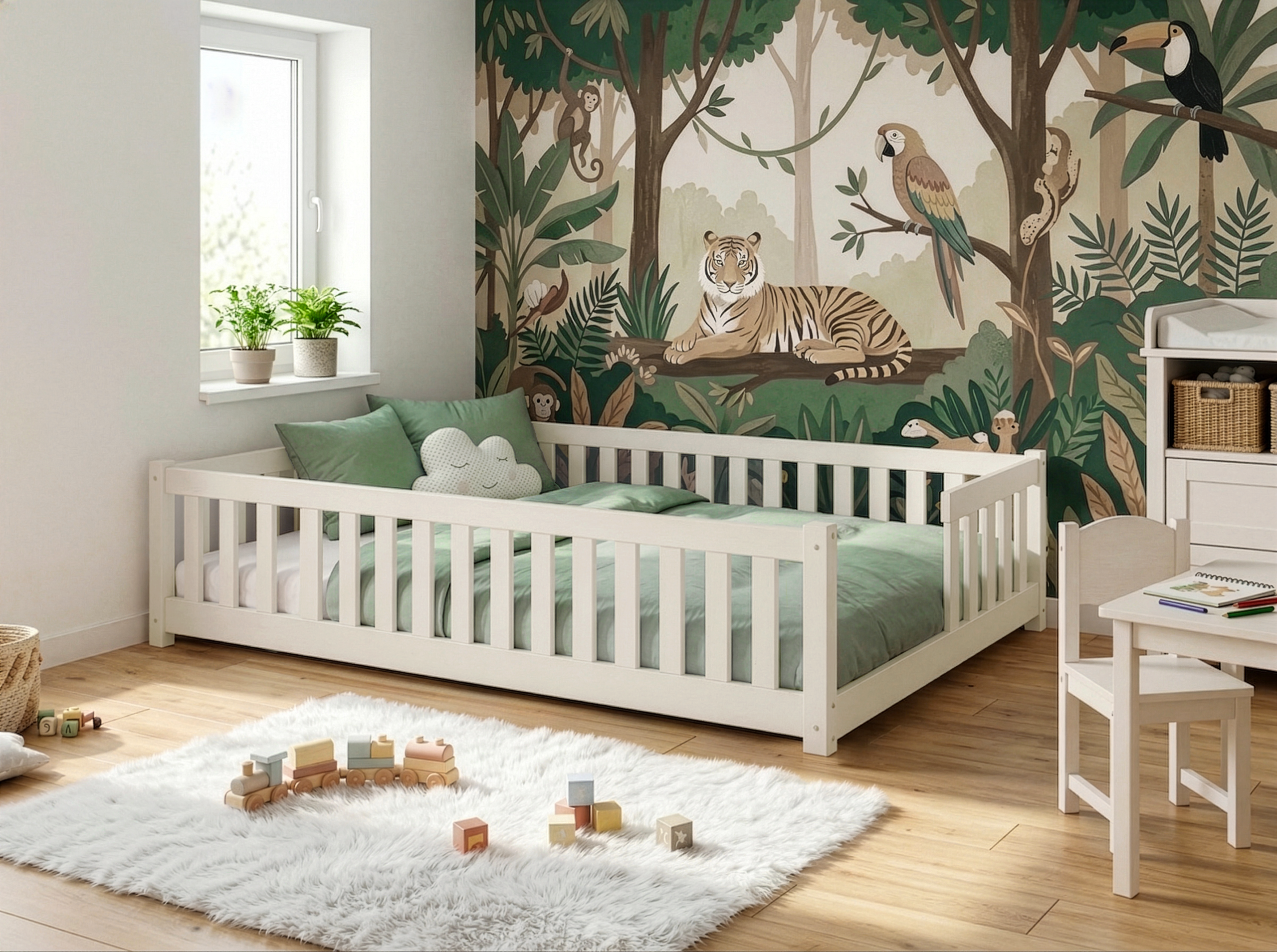 Krevet ima ugrađenu fiksnu pregradu koja pomaže spriječiti nenamjerne padove tijekom spavanja. To je posebno važno kod mlađe djece koja se tijekom sna često pomiču. Konstrukcija omogućuje jednostavno sastavljanje jer su svi elementi precizno obrađeni i prilagođeni stabilnoj montaži. Budući da je riječ o fiksnoj izvedbi bez podiznog mehanizma, krevet je iznimno čvrst i otporan na dugotrajnu upotrebu.