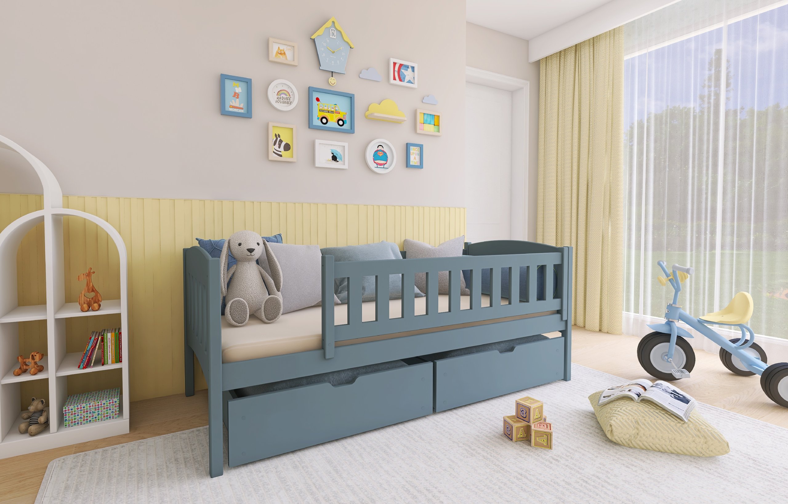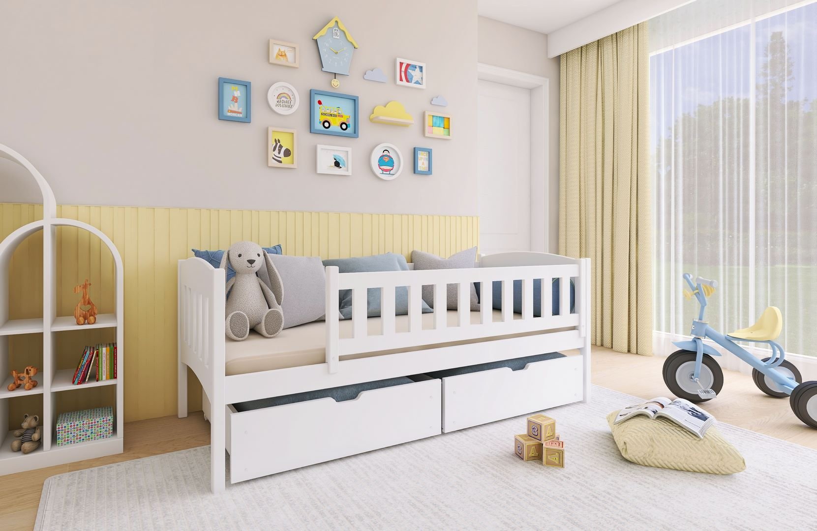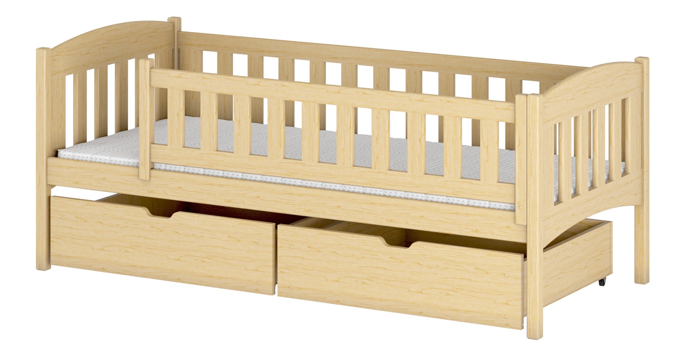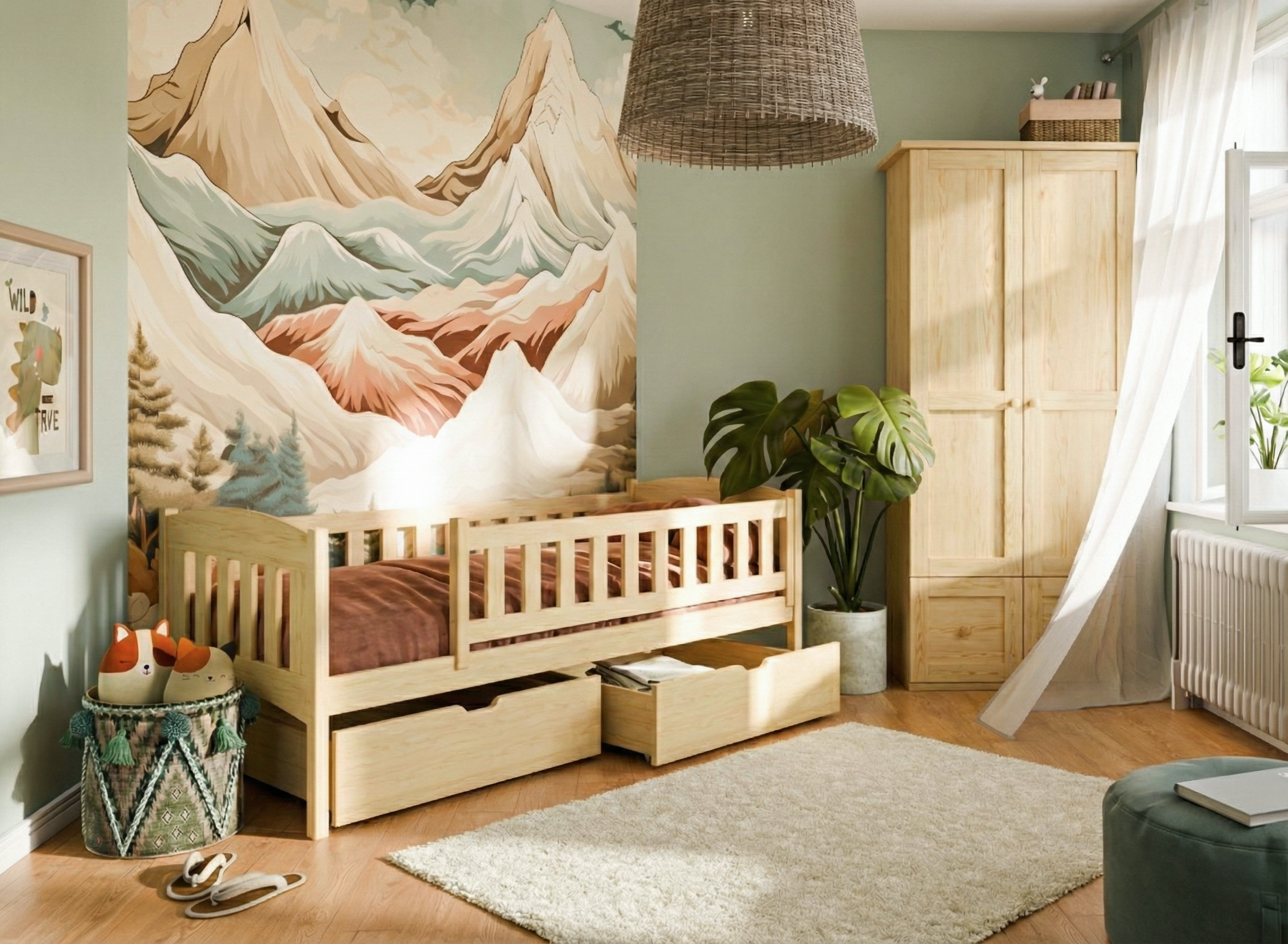 Dječji krevet Gucio je kvalitetan komad namještaja, izrađen od izdržljivog borovog drva, koji osigurava stabilnost, sigurnost i dug vijek trajanja. Jednostavnim, ali domišljatim dizajnom lijepo se uklapa u različite stilove dječjih soba – od svijetlo skandinavskog do toplog rustikalnog ili suvremenog minimalističkog. Krevet je dostupan u brojnim bojama, što omogućuje potpunu prilagodbu osobnosti i prostoru vašeg djeteta. Budući da je madrac izboran, možete odabrati ležište po mjeri i udobnosti koje odgovara potrebama djeteta.