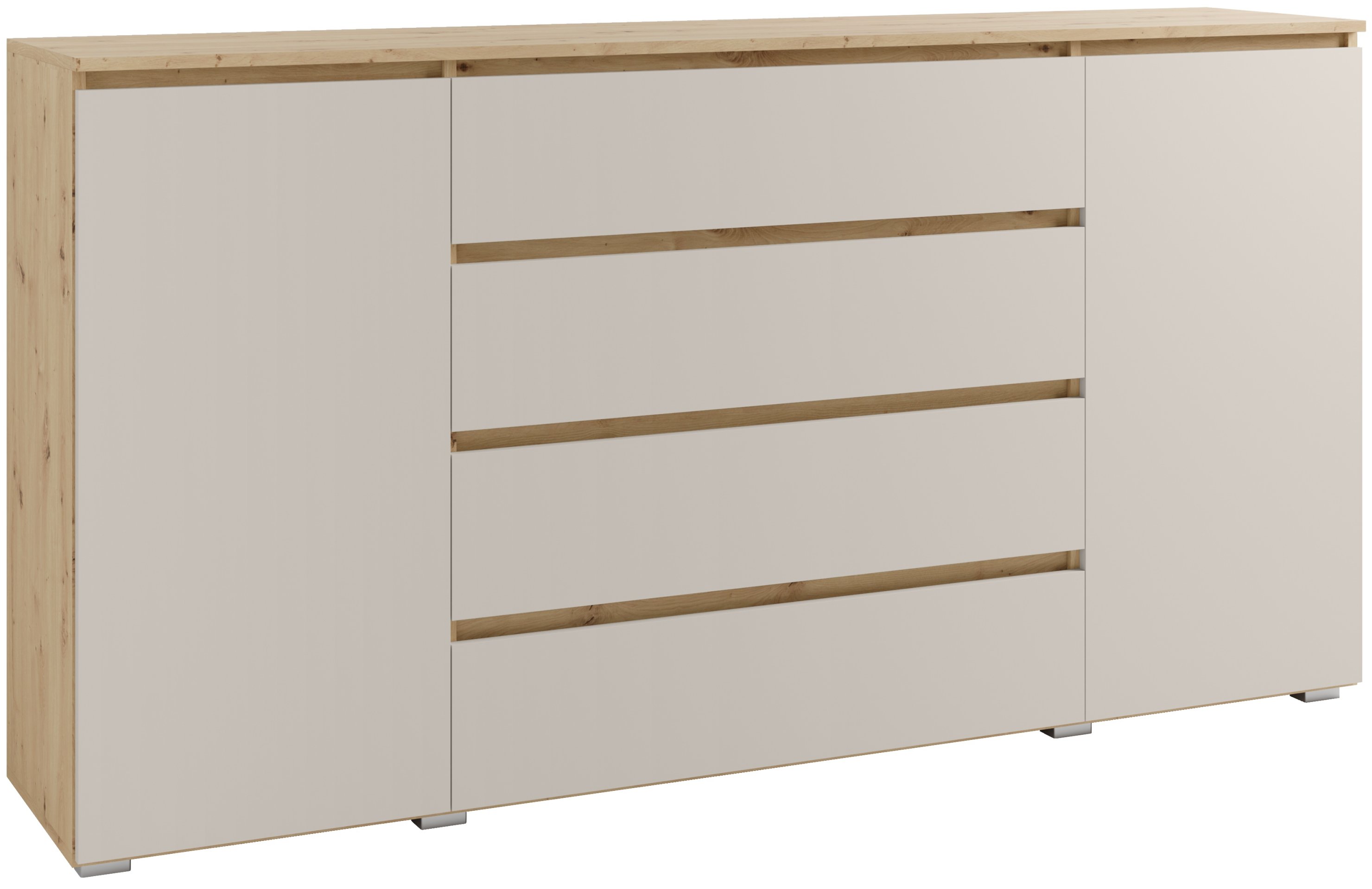 U suvremenom domu prostor ima sve veću vrijednost, zato je važno odabrati namještaj koji spaja funkcionalnost, estetiku i kvalitetnu izradu. Upravo takve karakteristike donosi elegantna komoda u boji hrast artisan/kašmir, koja svojom čistom linijom i promišljenim dizajnom postaje nezamjenjiv komad namještaja u dnevnom boravku, blagovaonici ili spavaćoj sobi. Svojom uravnoteženom kombinacijom topline drveta i suvremenog minimalističkog oblika pobrinut će se da vaš dom oživi u harmoničnom izgledu, a istovremeno nudi praktično rješenje za pohranu različitih predmeta.