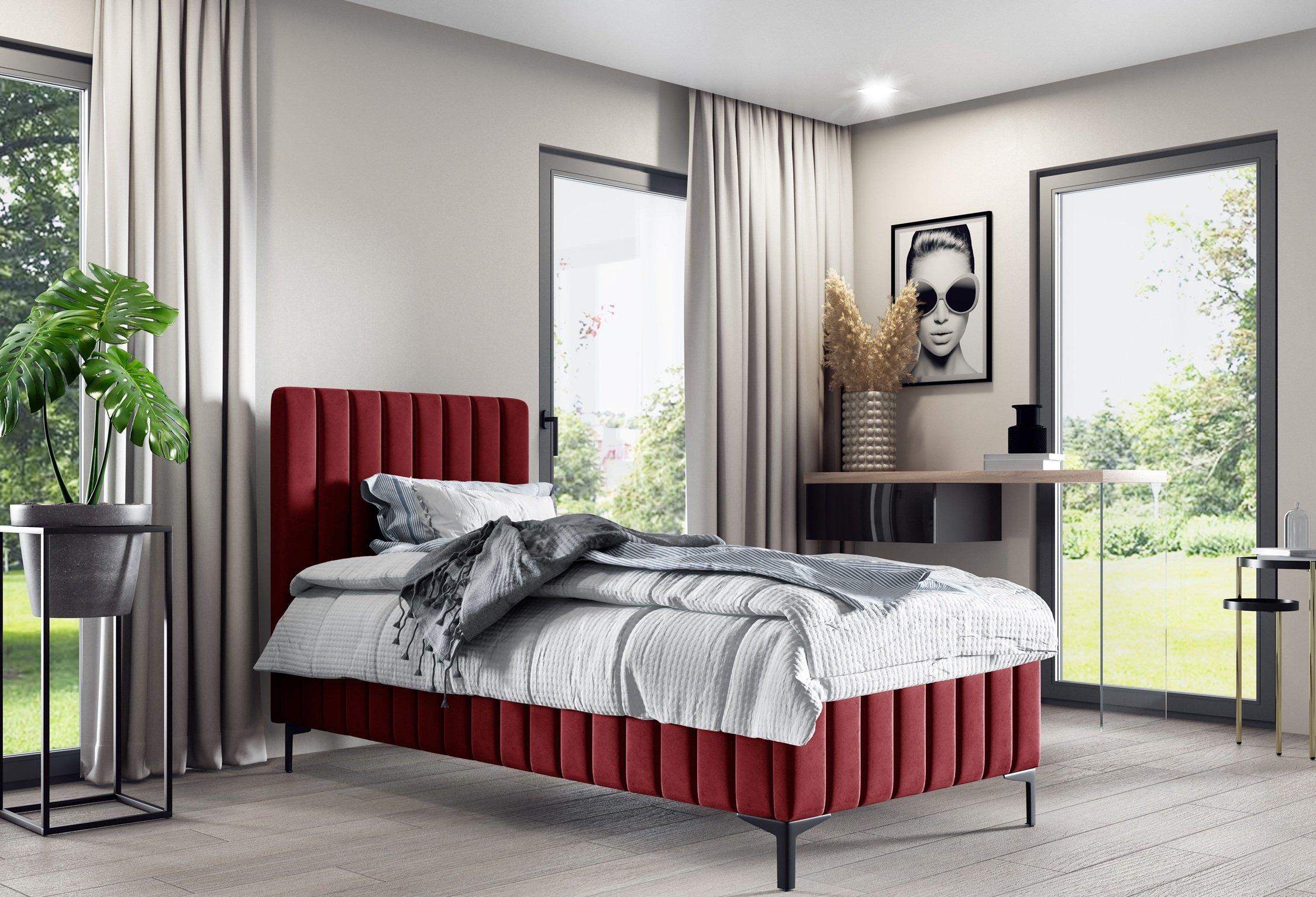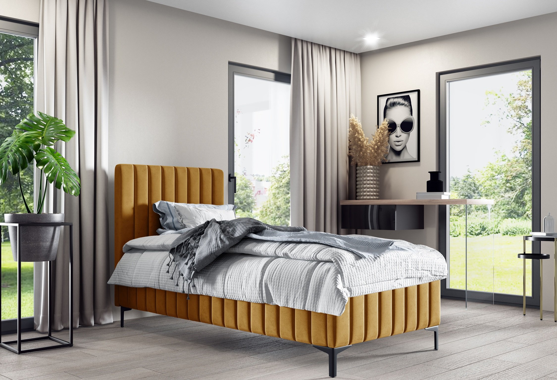 Podizni krevet Milo Mini nije samo praktičan komad namještaja, već i estetski naglasak spavaće sobe. Tapecirani okvir i meke linije stvaraju osjećaj topline i udobnosti koji poziva na odmor. Zbog mogućnosti izbora različitih boja tkanina model se lako prilagođava postojećem namještaju i dekoru prostora.