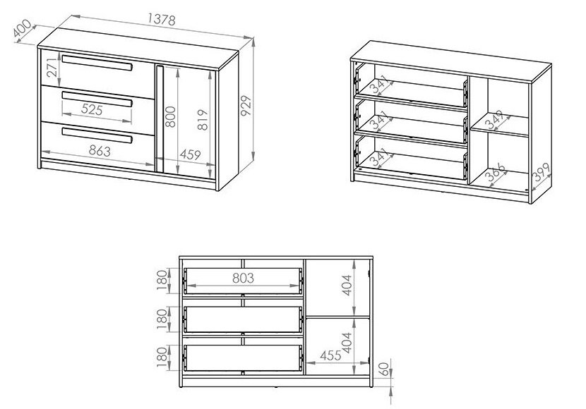Kolekcija se sastoji od kreveta, ormara i komoda, poličara, regala, radnog stola, polica ...