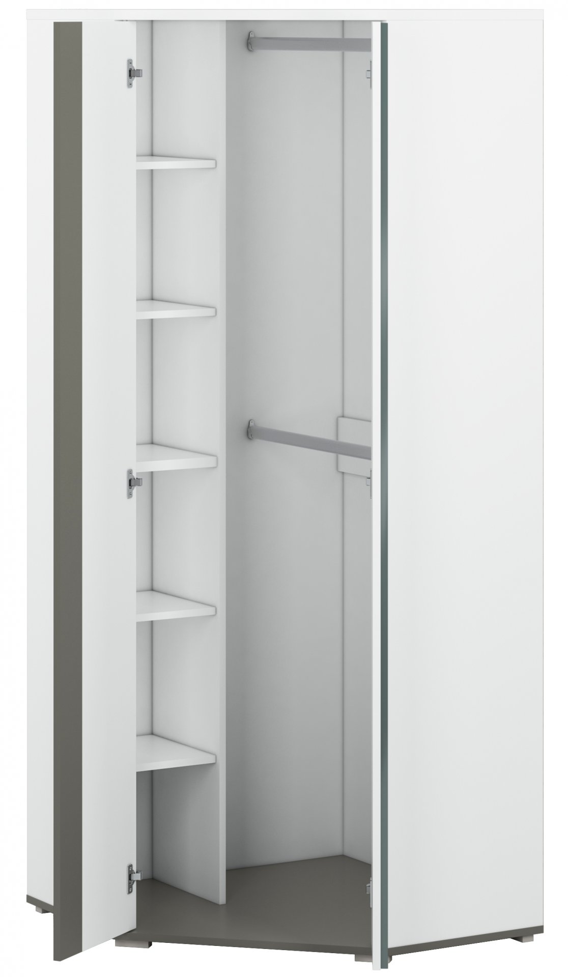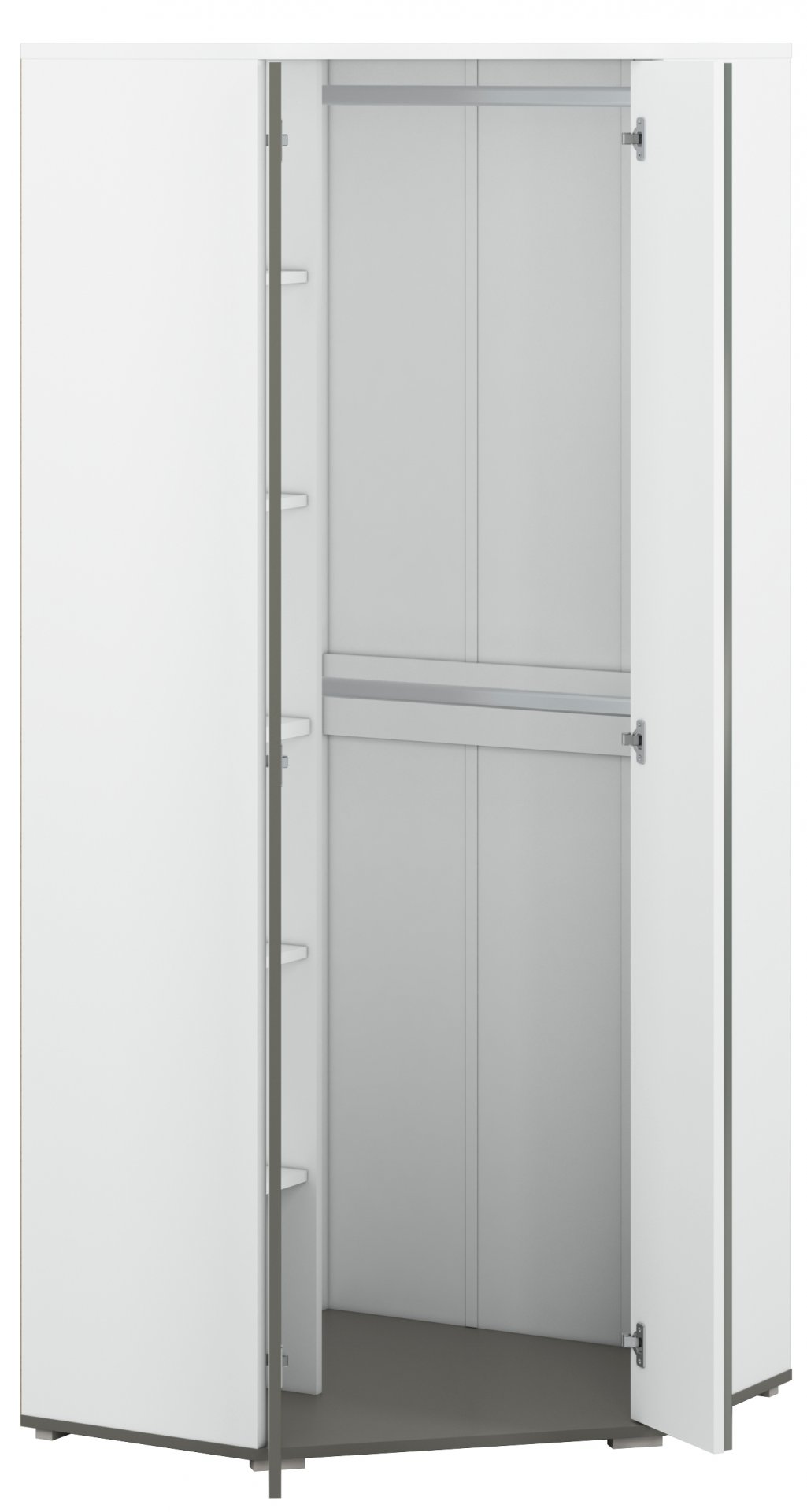 Kutni ormar s 5 polica i 2 šipke za vješanje.