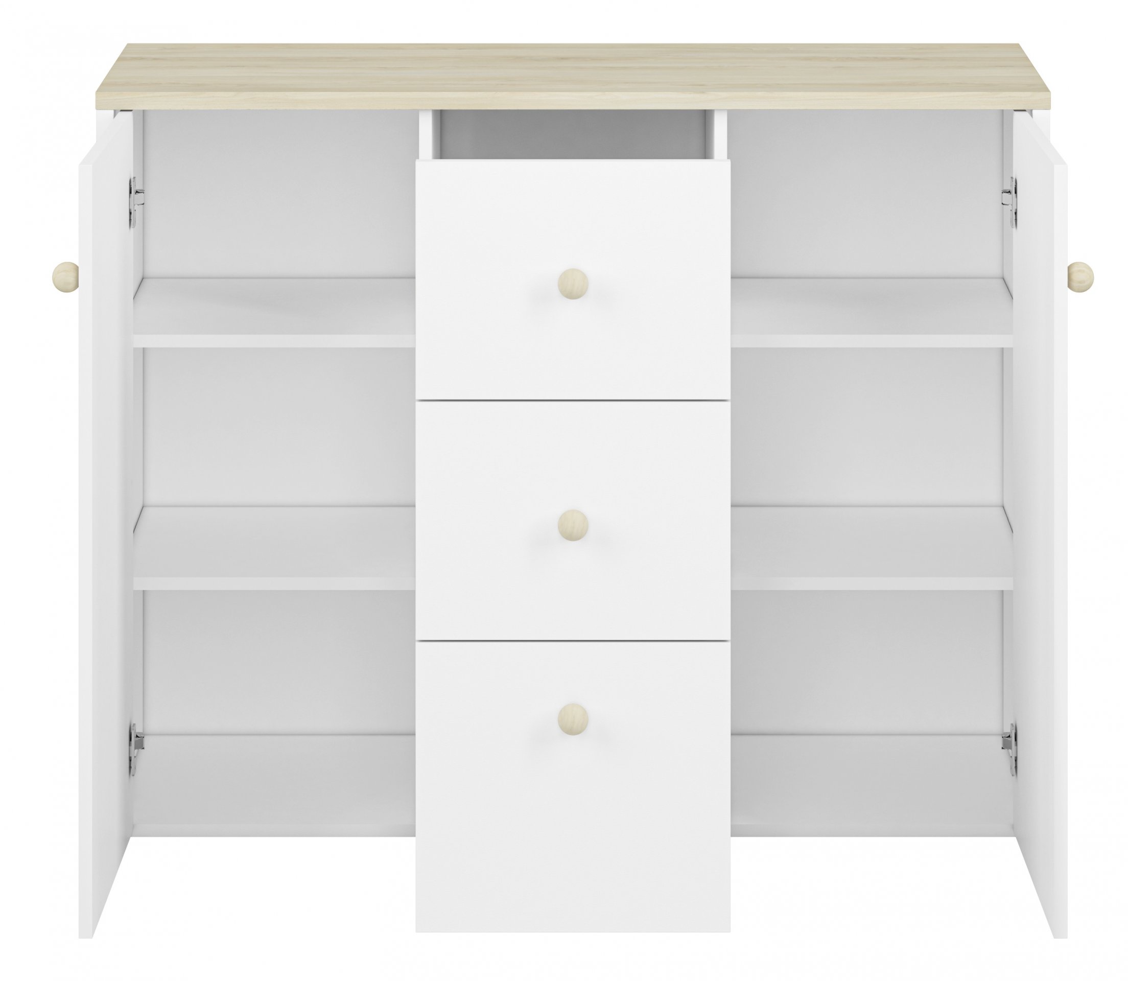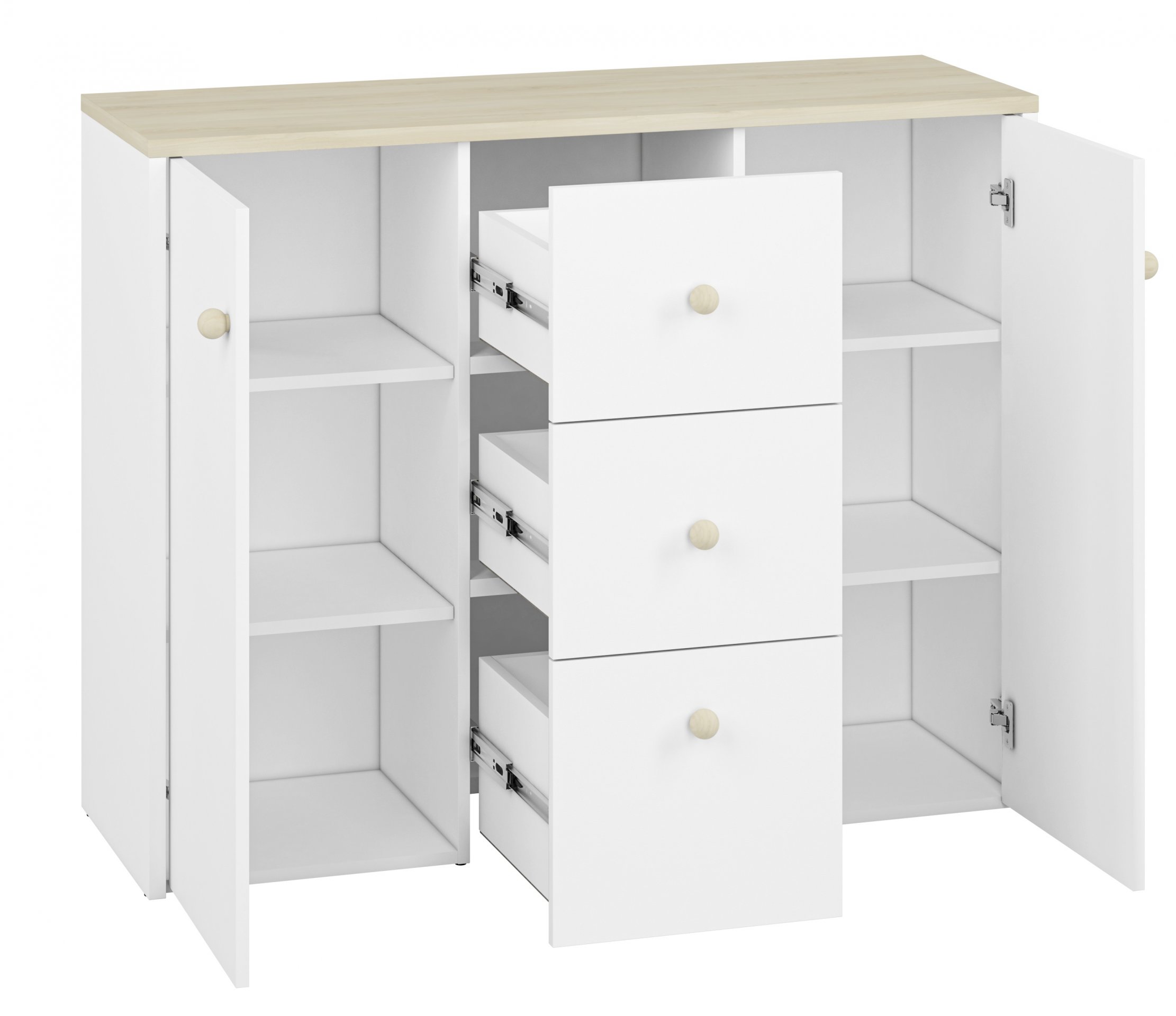 Široka komoda Elmo nudi puno prostora za odlaganje dječjih predmeta.