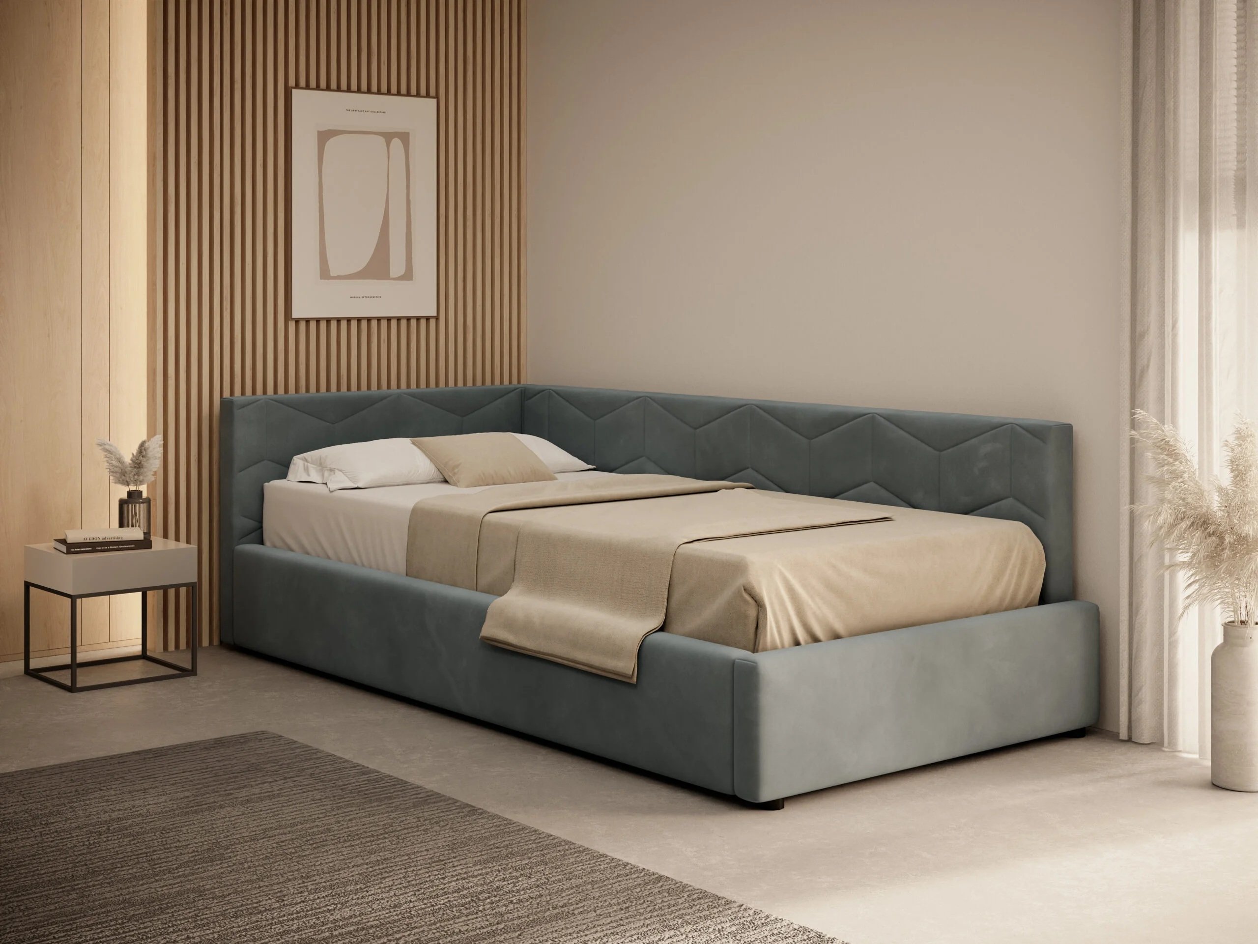Krevet je izrađen u tvornici Pionier u Poljskoj, gdje se spajaju suvremeni proizvodni procesi s dugogodišnjim iskustvom u izradi tapeciranog namještaja. Konstrukcija uključuje kombinaciju visoko elastične pjene, PUR pjene, drva i kvalitetne tkanine. Ta kombinacija osigurava stabilnost, udobnost i dug životni vijek proizvoda. Drveni elementi čine čvrst okvir, dok mekši materijali pružaju ugodan osjećaj pri svakodnevnoj uporabi.