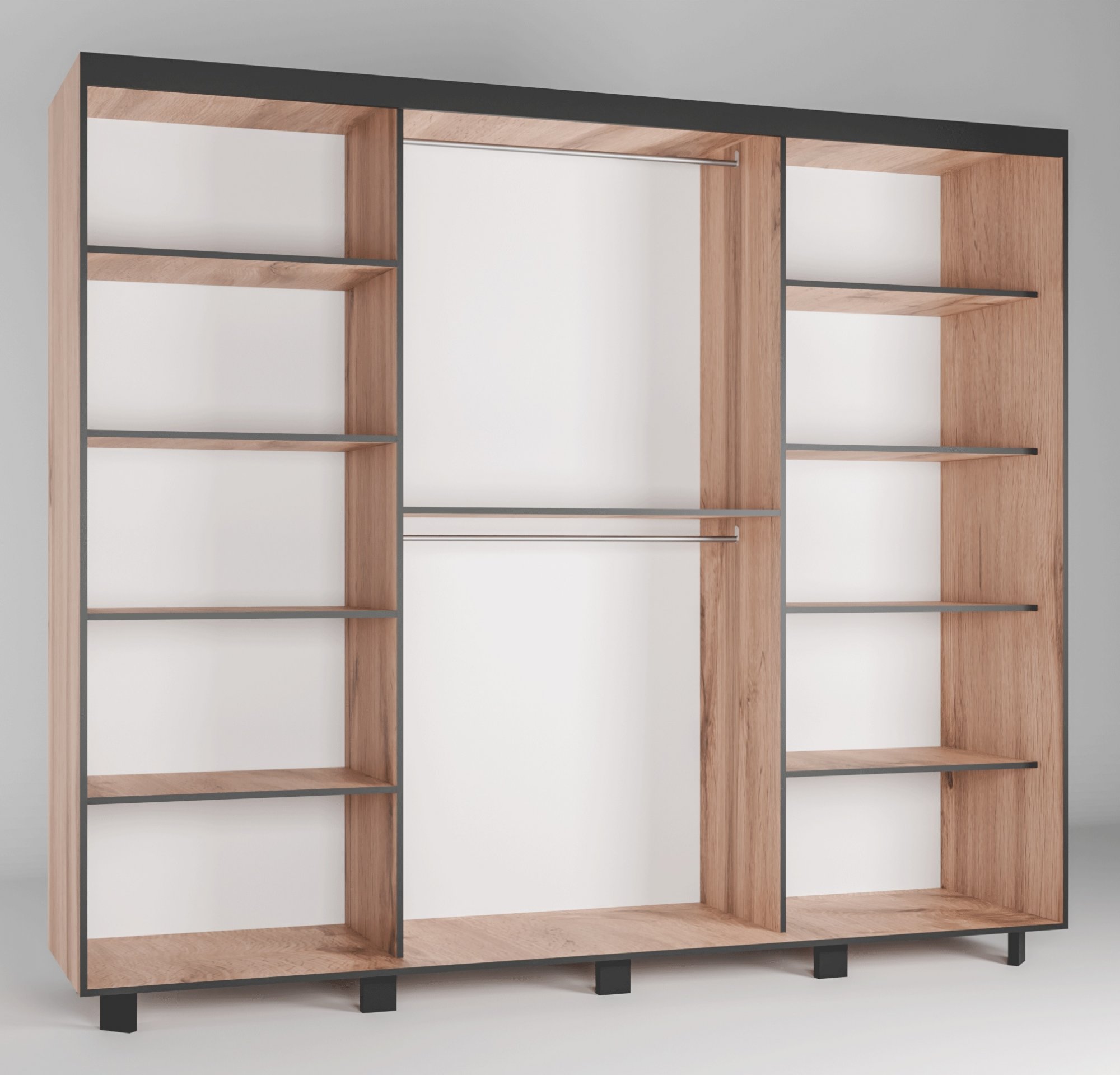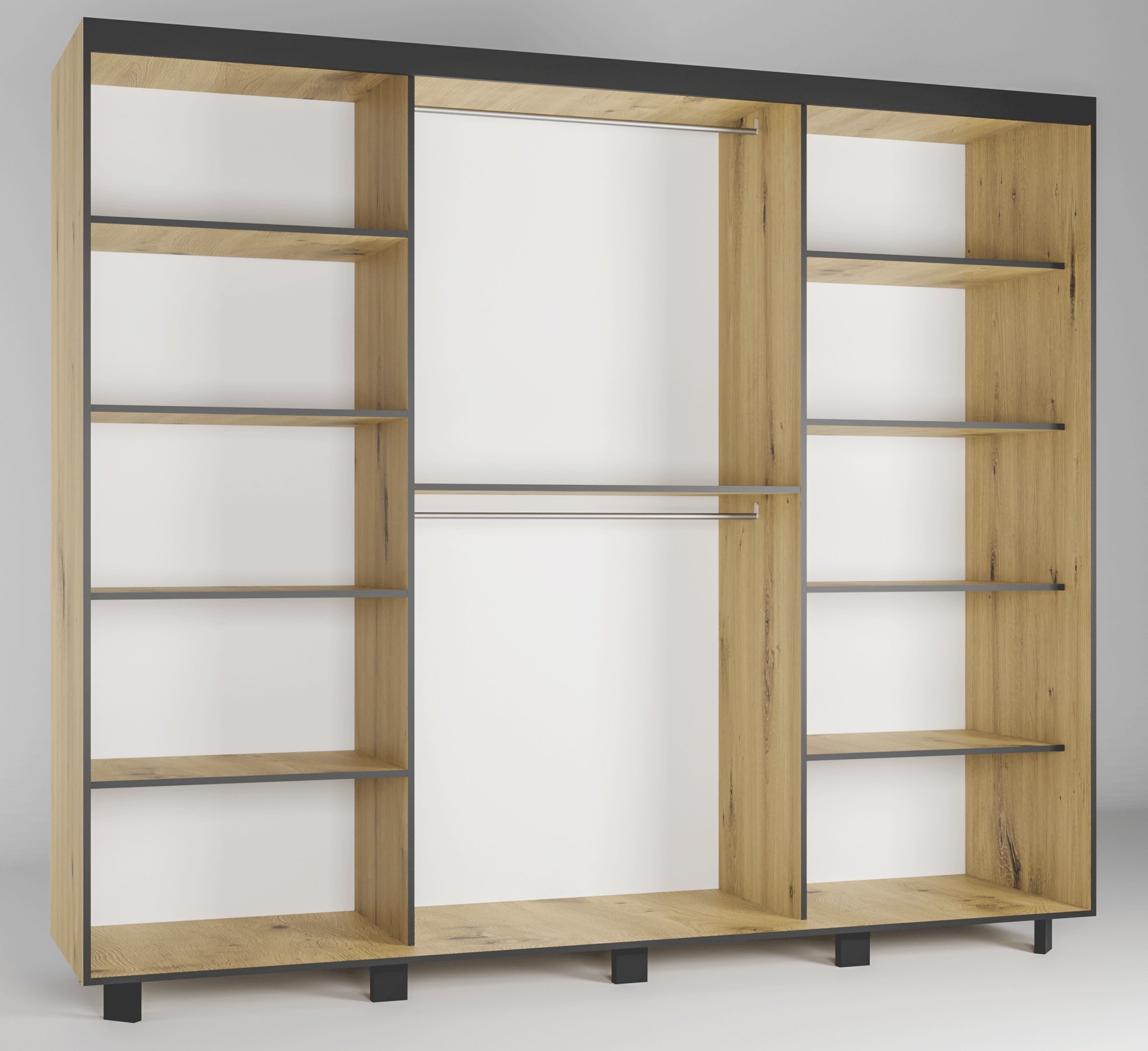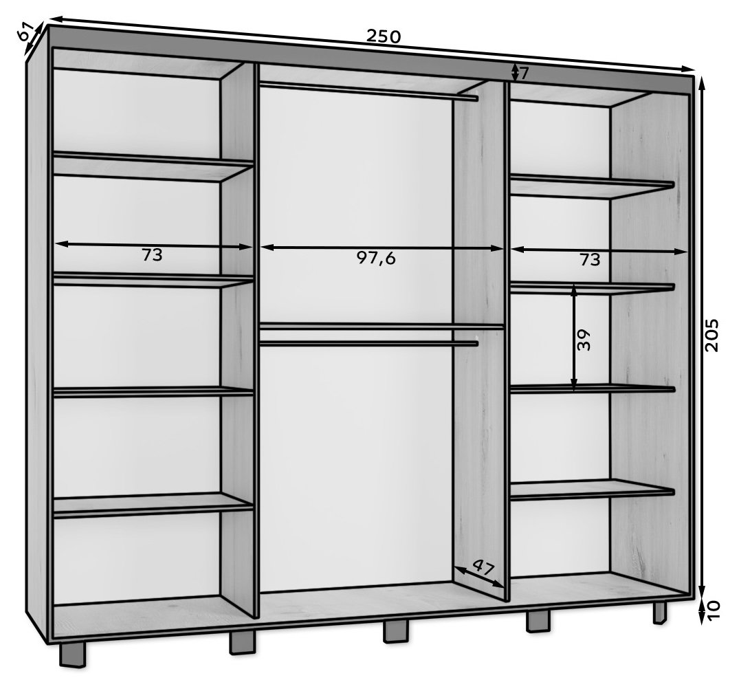Ormar sadrži 2x šipku za vješanje odjeće i police. Uputstva za sastavljanje su priložena.