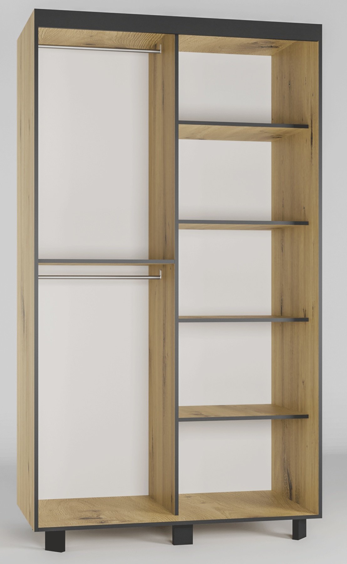 Ormar Solano, modernog dizajna, nudi velik prostor za odlaganje odjeće i stvari. Funkcionalnost ormara osiguravaju brojne police i šipka za vješanje odjeće.