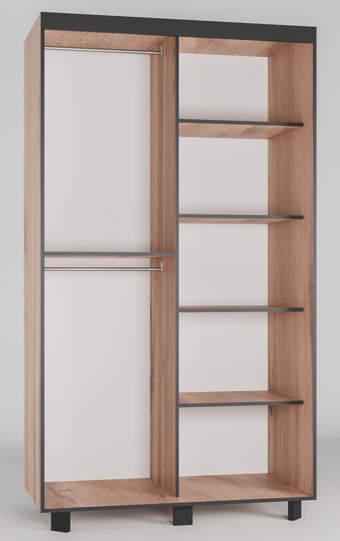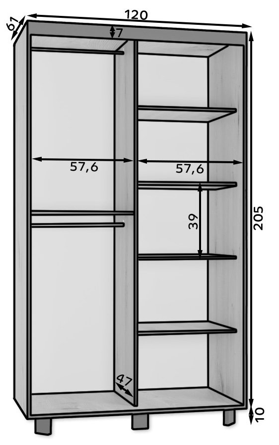 Ormar sadrži šipku za vješanje odjeće i velike police. Uputstva za sastavljanje su priložena.