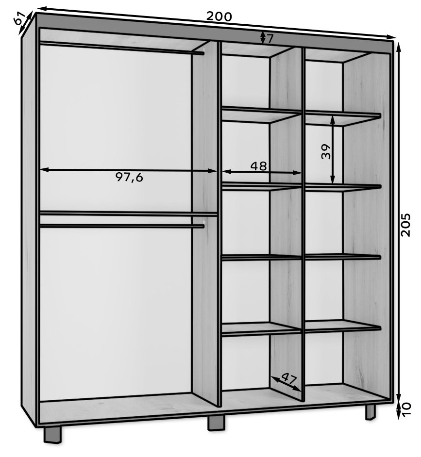 Ormar sadrži šipku za vješanje odjeće i velike police. Uputstva za sastavljanje su priložena.
