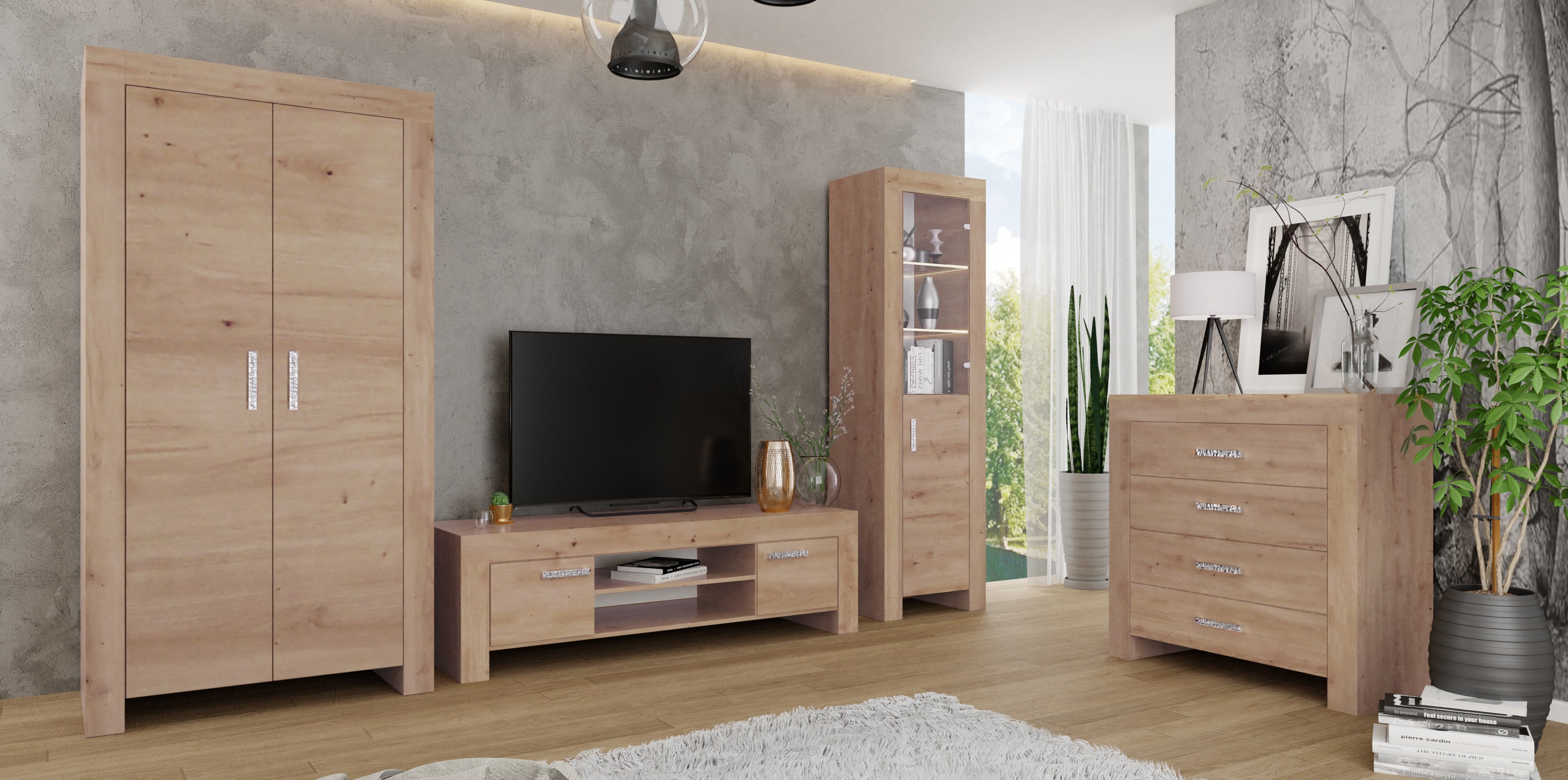 Tv element Werona se ističe jednostavnim dizajnom koji naglašava prirodnu ljepotu drveta. Ova estetska karakteristika dodaje prostoru toplinu, udobnost i autentičan osjećaj. Dizajn kolekcije naglašava minimalističku eleganciju koja se uklapa u različite stilove unutarnjeg uređenja od klasičnog do modernog stila.