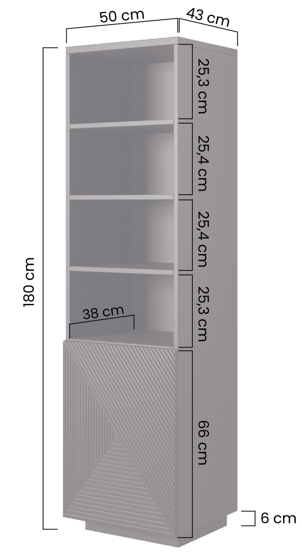 Predstavljamo vam regal na coklu Asha 50 1D, koji u vaš dom donosi dašak elegancije i funkcionalnosti. S dimenzijama 50x43x180 cm ovaj se regal savršeno uklapa u svaki prostor, a pritom nudi dovoljno mjesta za pohranu. Njegova profinjena boja kašmir unosi u vaš interijer toplinu i prestiž.