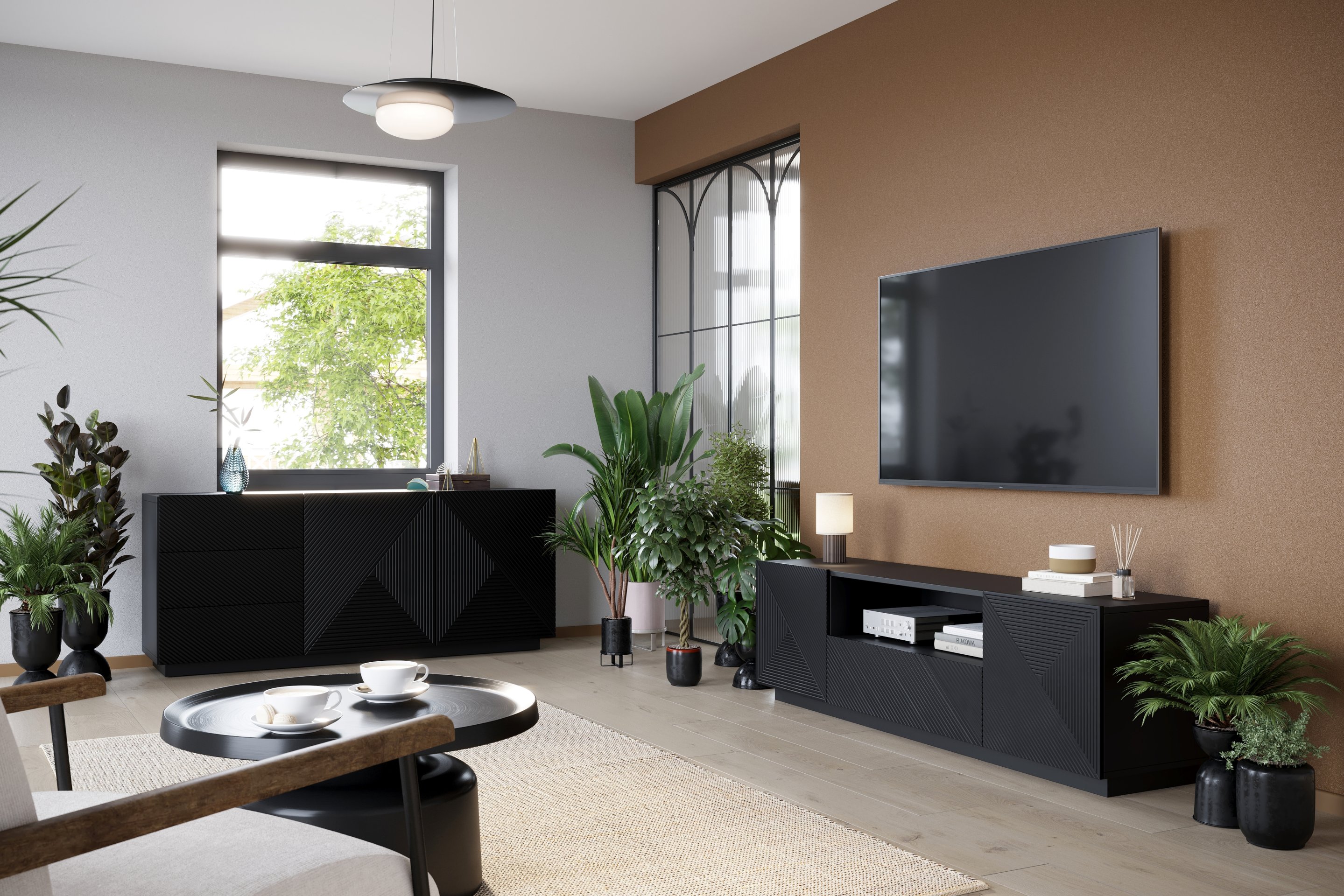 Predstavljamo vam dnevni boravak i spavaću sobu na coklu Asha u sofisticiranoj crnoj boji, koja će vašem domu dodati dašak elegancije i modernosti. Ovaj komplet namještaja osmišljen je za one koji cijene minimalistički stil, funkcionalnost te visoku kvalitetu materijala.