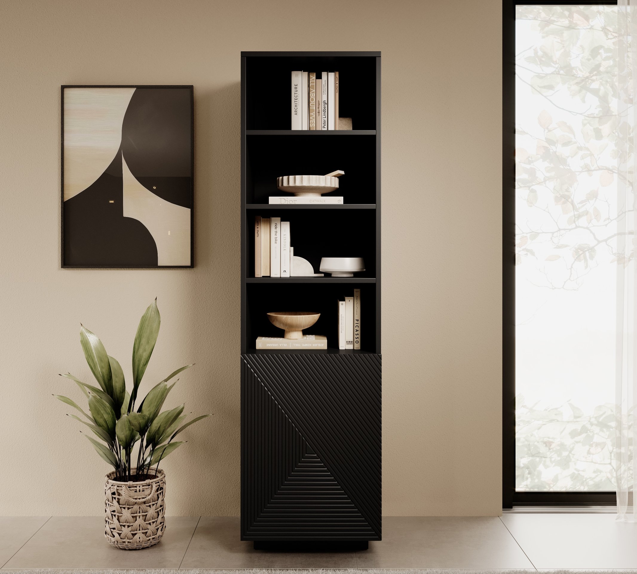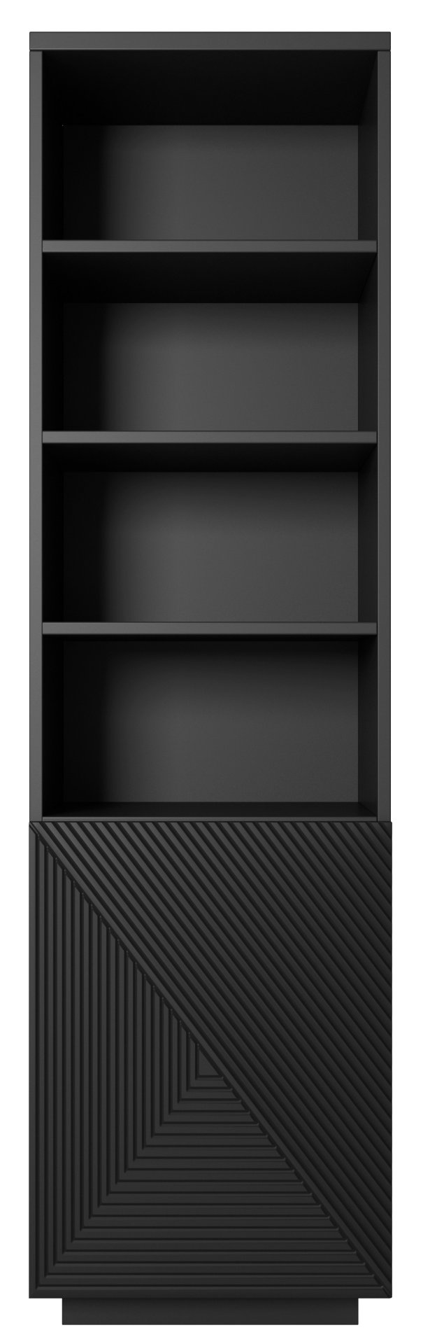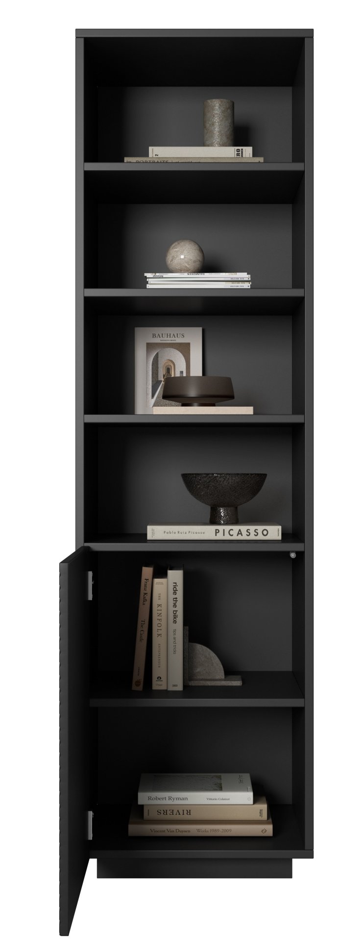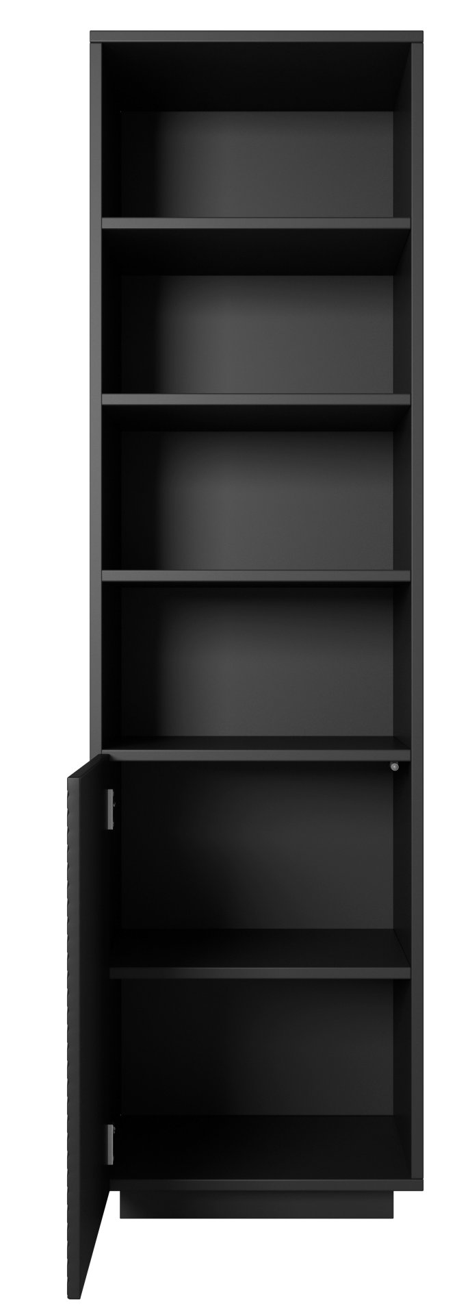 Jedna od glavnih prednosti regala Asha je njegov sustav otvaranja na pritisak, koji omogućava tiho i elegantno otvaranje bez uporabe ručki. Ovaj minimalistički pristup dizajnu ne samo da doprinosi modernom izgledu, već i povećava funkcionalnost namještaja. Regal je idealan za svaki prostor, bilo u dnevnom boravku, spavaćoj sobi ili uredu, jer se zahvaljujući svojoj crnoj boji savršeno uklapa u različite stilove interijera.