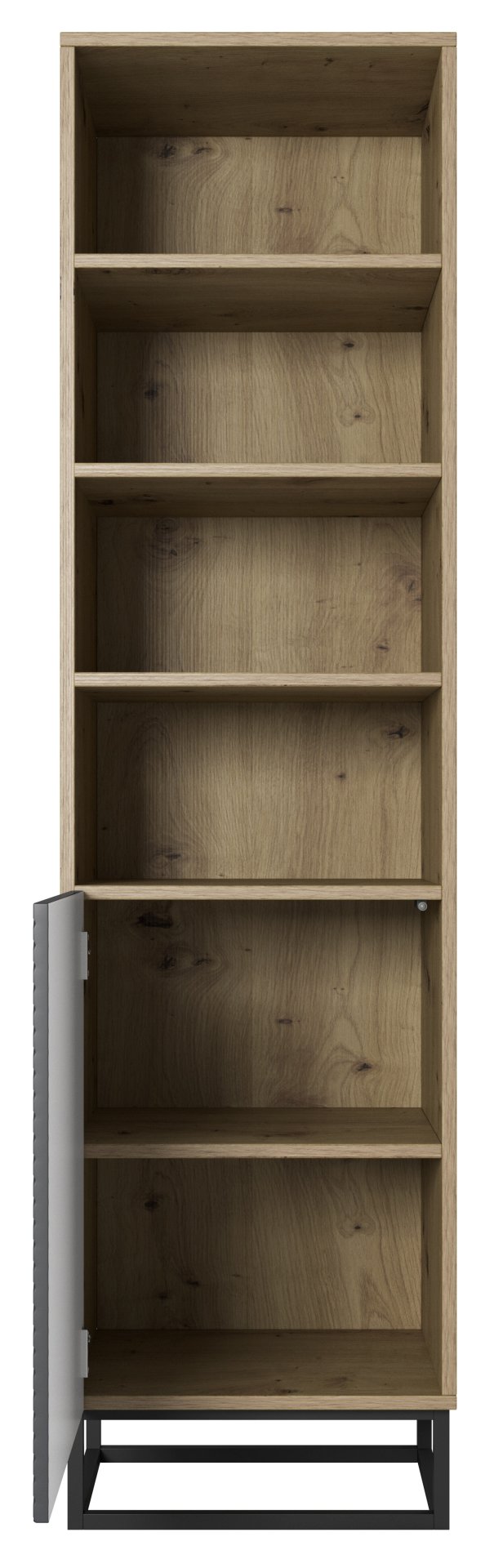 Prilagodljivost i funkcionalnost: Regal Asha 50 1D osmišljen je tako da odgovara potrebama suvremenog korisnika. S dimenzijama 50x43x190 cm nudi dovoljno prostora za pohranu knjiga, dekorativnih predmeta i drugih potrepština, a pritom ne zauzima mnogo mjesta.