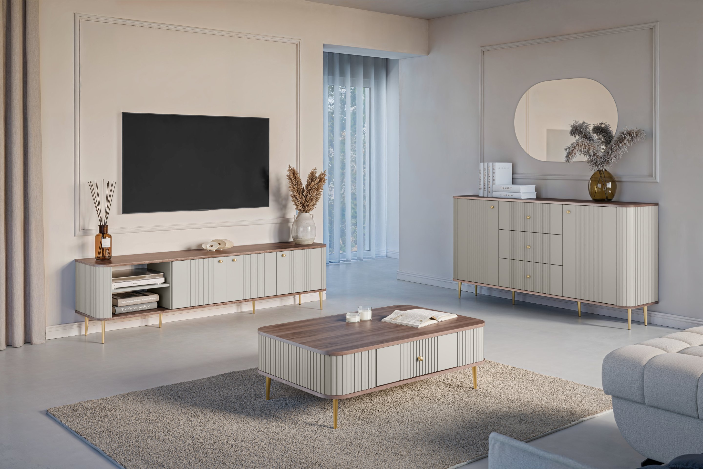 Predstavljamo vam Vesper, prestižnu kolekciju koja spaja suvremenu eleganciju i bezvremensku udobnost. Njezin dizajn u boji kašmira i oraha unosi toplinu i profinjenost u svaki prostor, dok zlatne metalne noge dodaju dašak luksuza. Ovaj jedinstveni set izvrsno je rješenje za one koji cijene stil i funkcionalnost u svom domu.