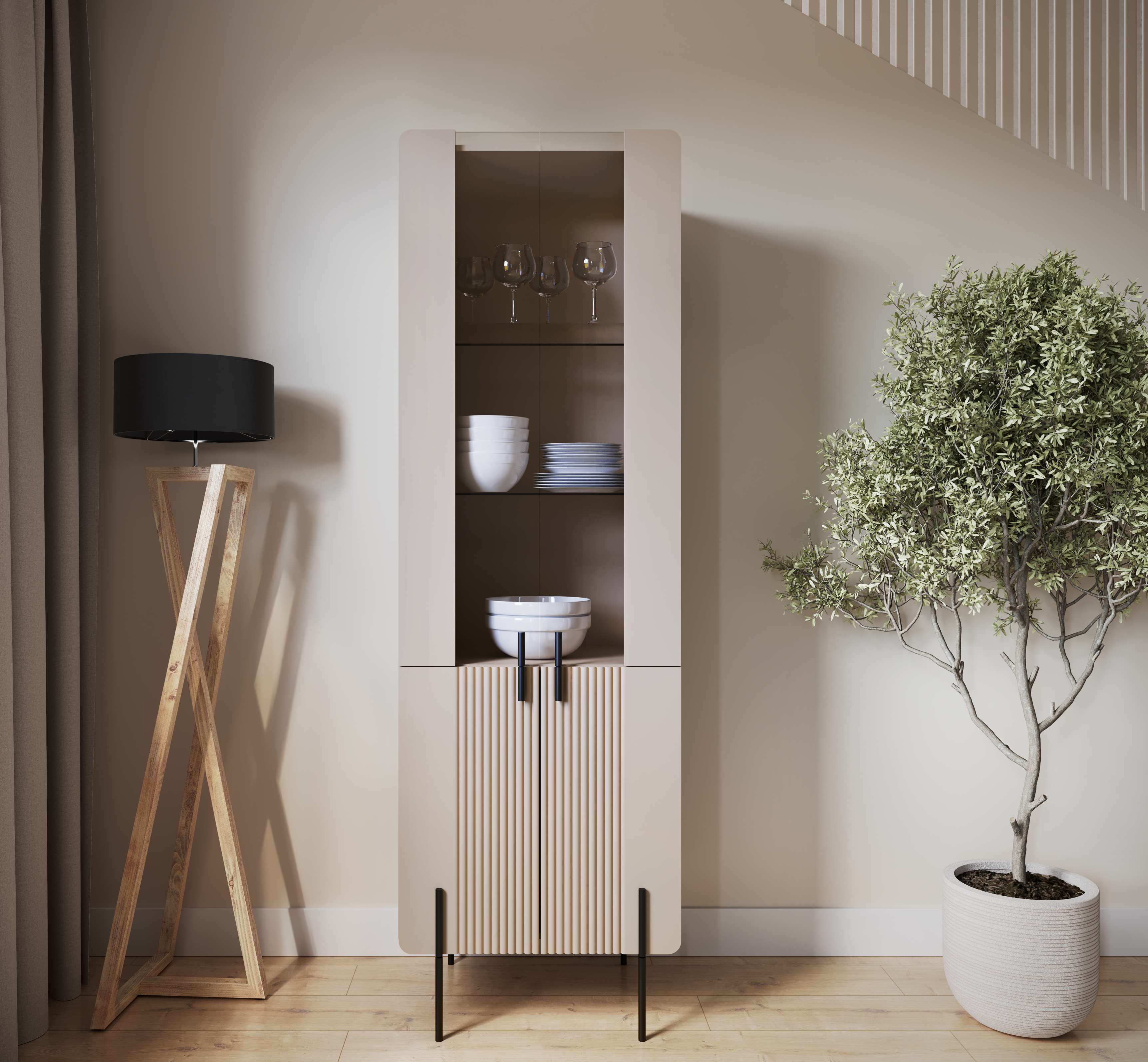 Otkrijte bezvremensku ljepotu i praktičnost vitrine Malmi 60 4D, koja spaja moderan dizajn s vrhunskom funkcionalnošću. Ova prekrasna vitrina u privlačnoj kašmir i krem bijeloj boji idealan je dodatak za svaki dom koji želi dašak elegancije i urednosti. Njezine dimenzije 60x42x190 cm omogućuju da se savršeno uklopi i u manje prostore, a istovremeno pruža dovoljno prostora za pohranu i izlaganje vaših omiljenih predmeta.