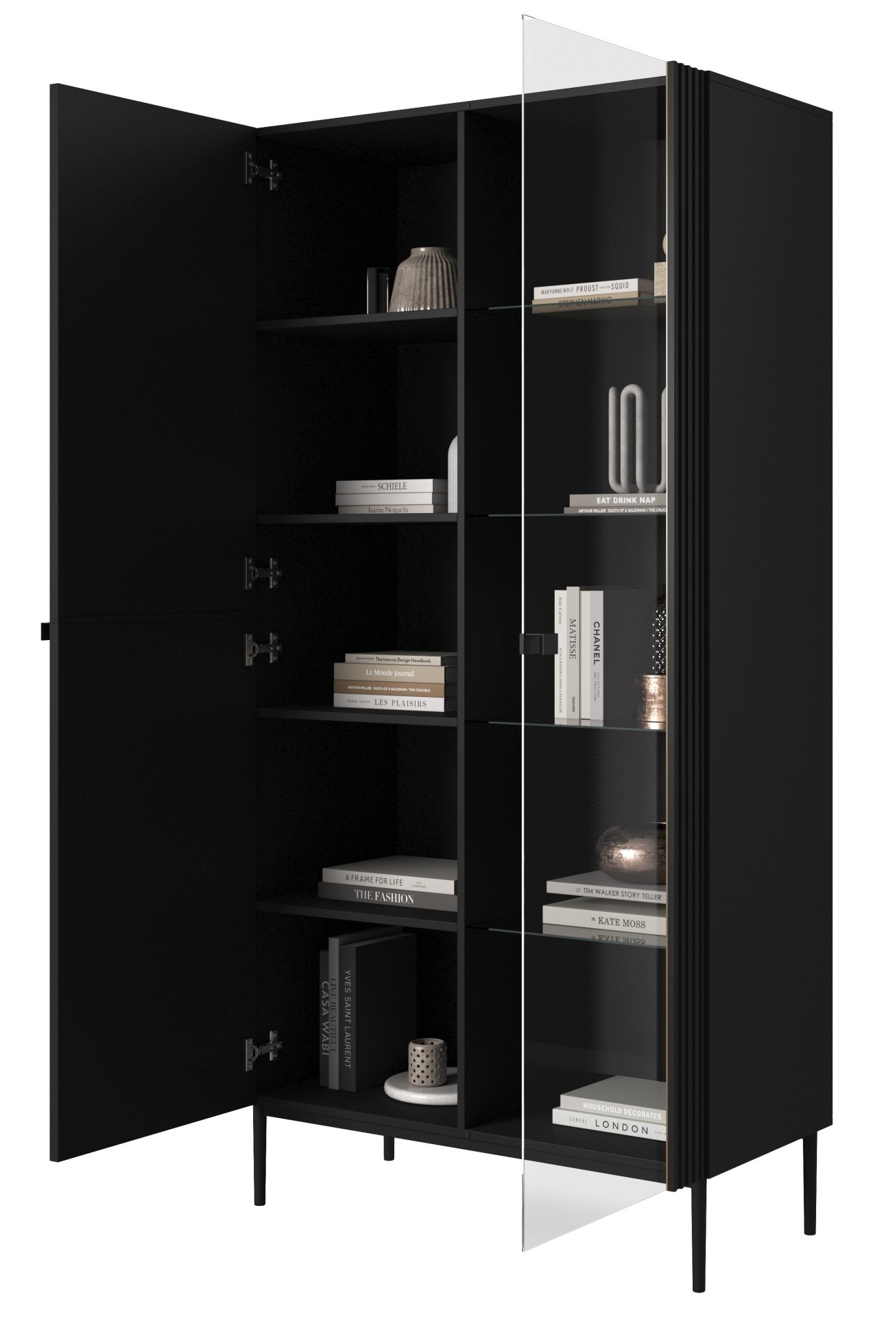 Vitrina Nicole 100 2D u crnoj boji savršen je izbor za sve koji žele dodati dašak suvremene elegancije svom domu. S dimenzijama 100x45x200 cm, ova vitrina se lako uklapa u različite prostore, od dnevnog boravka do ureda, i nudi idealnu kombinaciju stilskog dizajna i praktične upotrebe.