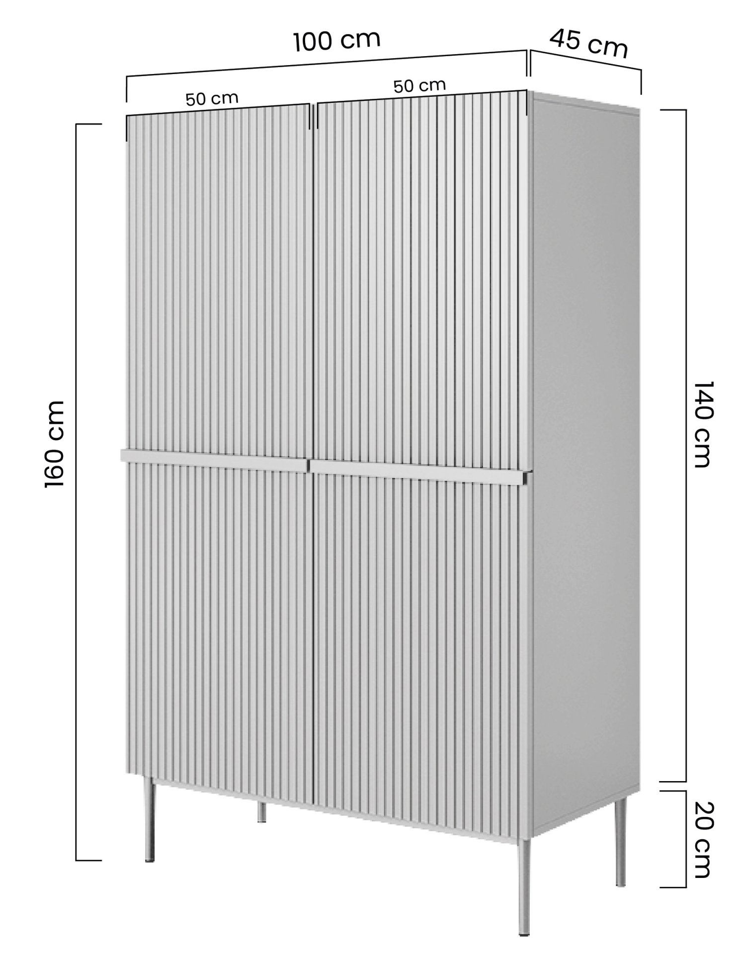 Izrađena od visokokvalitetnih materijala, poput ploče za namještaj debljine 16 mm i MDF ploče debljine 18 mm, vitrina Nicole stvorena je za dug vijek trajanja. Njezin izraženi rebrasti uzorak na frontama donosi moderan i jedinstven izgled koji će zasigurno privući poglede vaših gostiju.