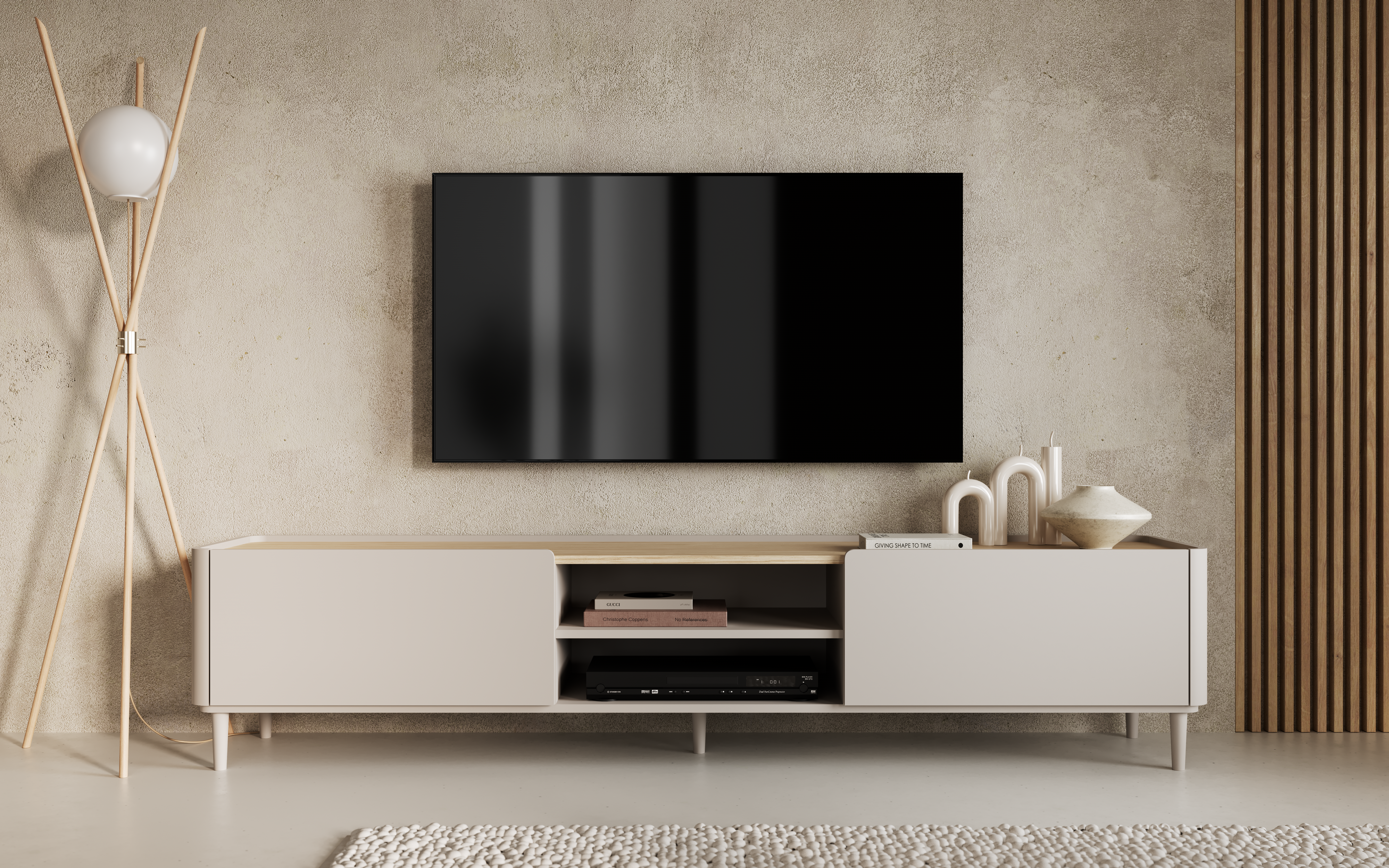 Ako tražite TV komodu koja spaja suvremeni dizajn, prirodne materijale i vrhunsku funkcionalnost, Elivo 220 1K1SZ – Bogart pouzdan je izbor. Svojom elegantnom kombinacijom kašmira i nauljenog hrasta postat će središnji element vašeg dnevnog prostora te pritom osigurati red i udobnost u svakodnevnom životu.
