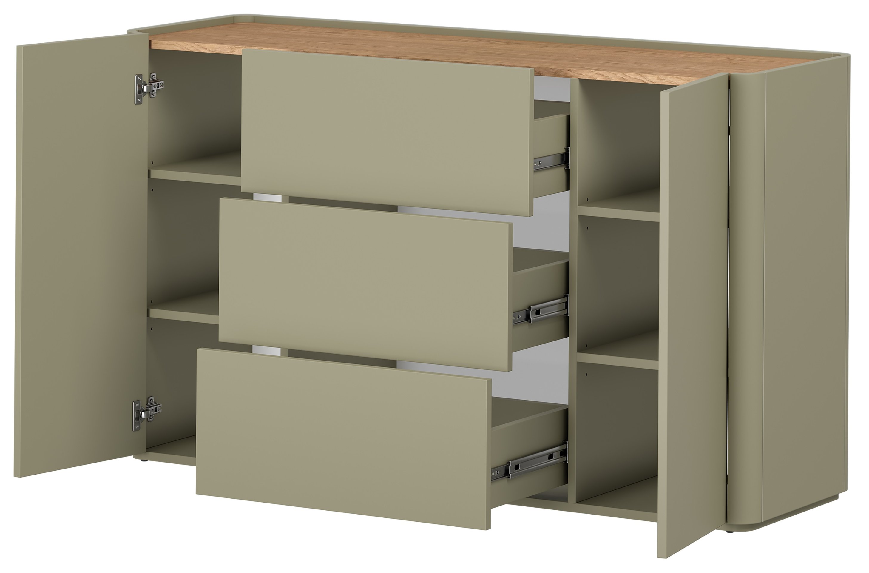 Model Elivo 150 2D3SZ dizajniran je tako da nudi optimalnu kombinaciju otvorenih i zatvorenih prostora za odlaganje. U unutrašnjosti se nalaze tri prostrane ladice i četiri podesive police koje omogućuju prilagodbu visine prema veličini pohranjenih predmeta. Dvije fronte olakšavaju pristup sadržaju i istovremeno održavaju uredan izgled vanjštine. Sustav Push to open omogućuje otvaranje vrata i ladica laganim dodirom, bez potrebe za ručkama, što dodatno naglašava minimalistički karakter komode.