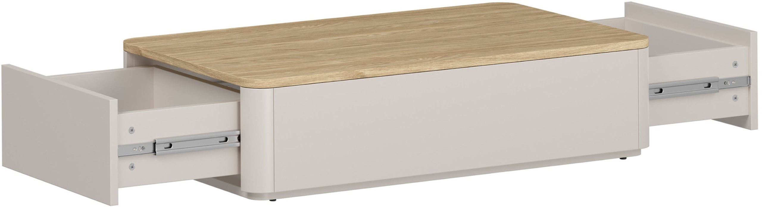 Klupski stolić Amilio robne marke Bogart spaja moderan dizajn s profinjenim izborom boja i materijala. Površina u kombinaciji kašmir/hrast nauljeni donosi toplinu drveta i meku, matiranu teksturu u prostoru. Zahvaljujući promišljenoj izradi od kvalitetnih ploča – melaminska ploča 18 mm, MDF 18 mm i HDF 3 mm – stolić osigurava stabilnost i dug vijek trajanja. Svojim dimenzijama 100 × 60 × 25,5 cm savršeno se uklapa s različitim vrstama garnitura i dnevnih soba, gdje stvara harmoničnu cjelinu.