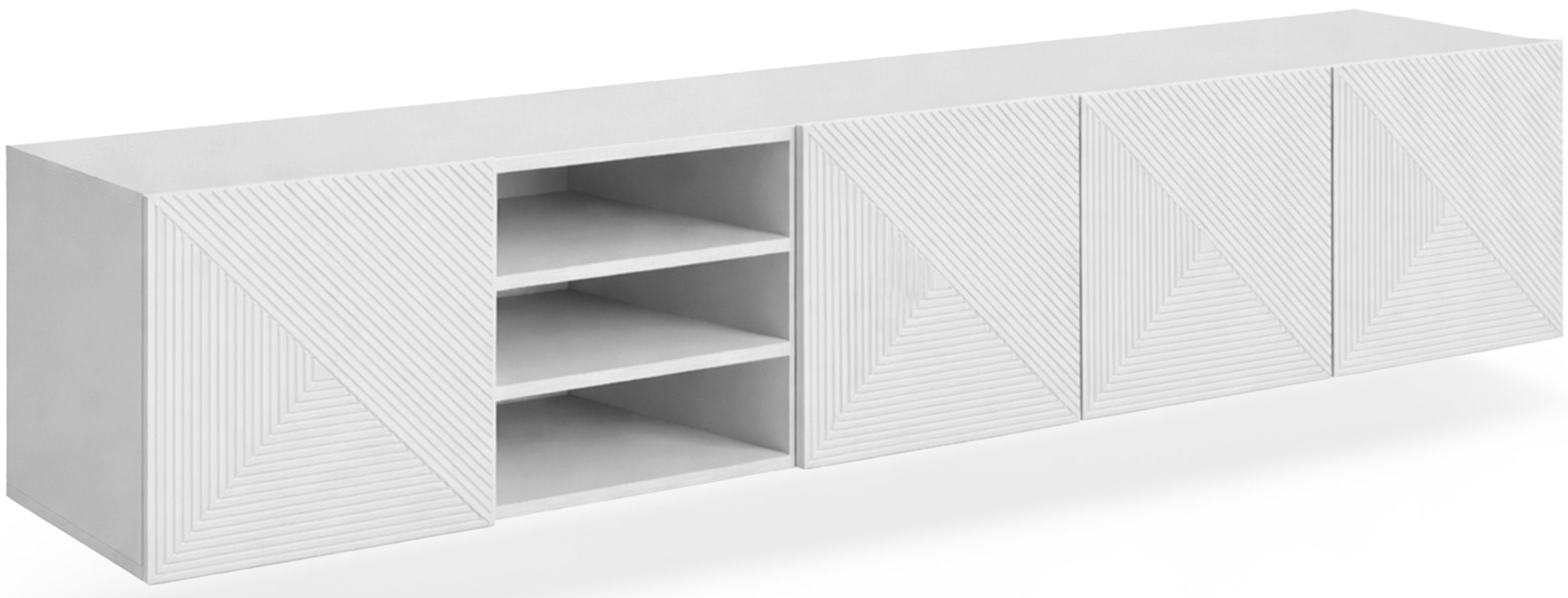 Zidna TV komoda Asha 200 5D marke Bogart dizajnirana je za one koji vole čiste linije, funkcionalnost i moderan izgled bez suvišnih ukrasa. Njezina duljina od 200 cm osigurava dovoljno prostora za odlaganje multimedijskih uređaja, dodataka i dekorativnih elemenata, a istovremeno zadržava vizualnu lakoću prostora, jer je komoda namijenjena montaži na zid. Bijela mat boja s blagim sjajem daje osjećaj prostranosti i svježine, pa se odlično uklapa u brojne unutarnje stilove – od skandinavskog do minimalističkog.