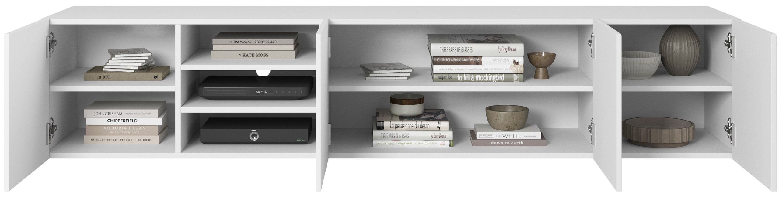 Budući da komoda nema noge, stvara dojam lebdenja iznad poda, što prostoru daje moderan karakter i olakšava čišćenje poda. U kombinaciji s drugim elementima u bijeloj ili kontrastnoj boji može tvoriti središnju točku dnevnog prostora ili se diskretno stopiti s okolinom.