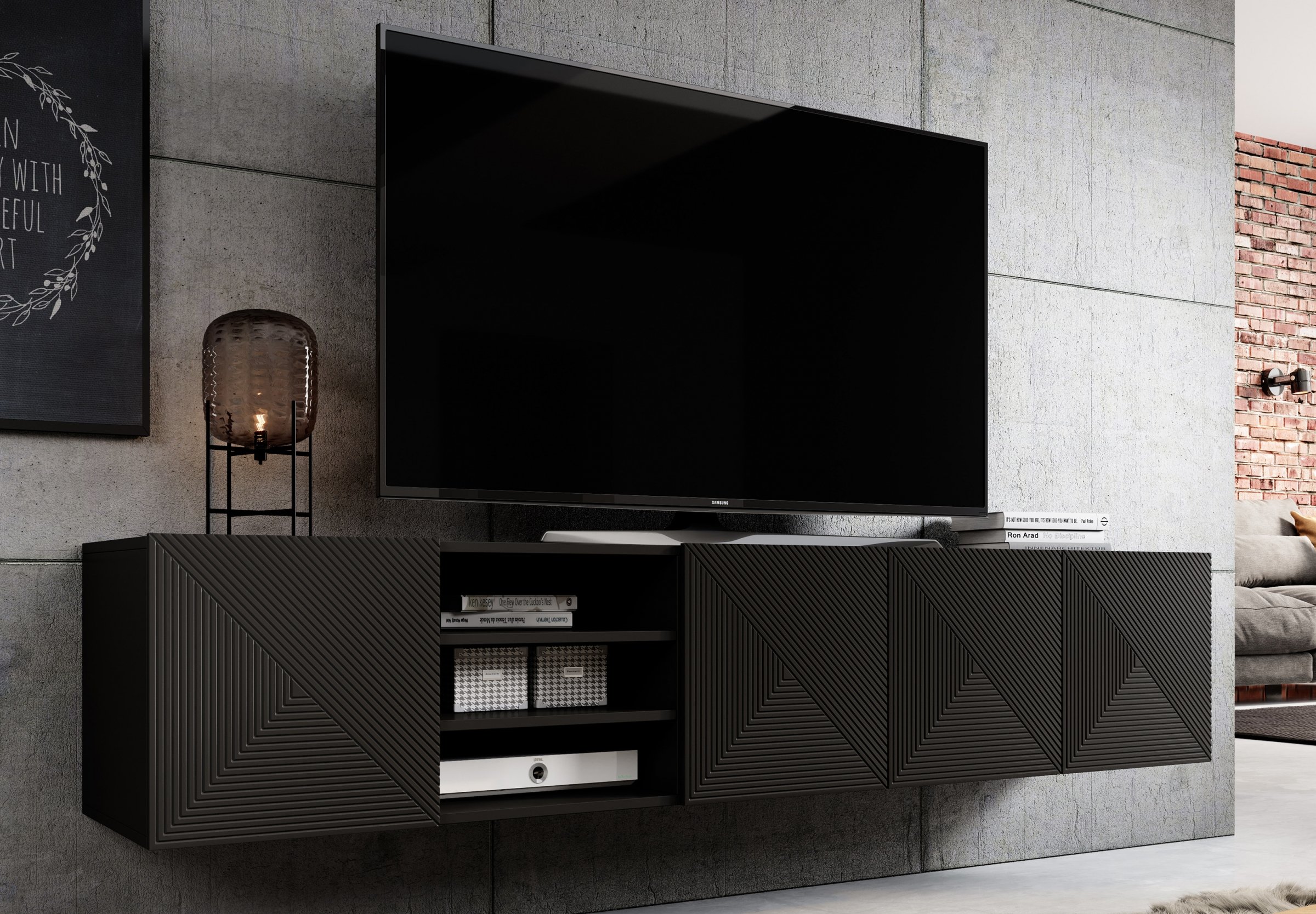 Zidna komoda Asha 200 5D u elegantnoj crnoj boji moderan je komad namještaja koji u dnevnom boravku spaja minimalistički dizajn i praktičnu funkcionalnost. Izrađena je u priznatoj tvornici Bogart u Poljskoj, gdje se naglasak stavlja na kvalitetu, preciznost izrade i trajnost korištenih materijala. Komoda je zamišljena kao viseći element bez nogu, što stvara dojam lakoće i vizualne uređenosti prostora. Njezina dužina od 200 cm omogućuje prostranu površinu za televizor i dodatnu dekoraciju, dok unutrašnjost nudi obilje prostora za pohranu multimedijskih uređaja, kabela, časopisa ili drugih predmeta koje želite imati pri ruci, ali skrivene od pogleda.