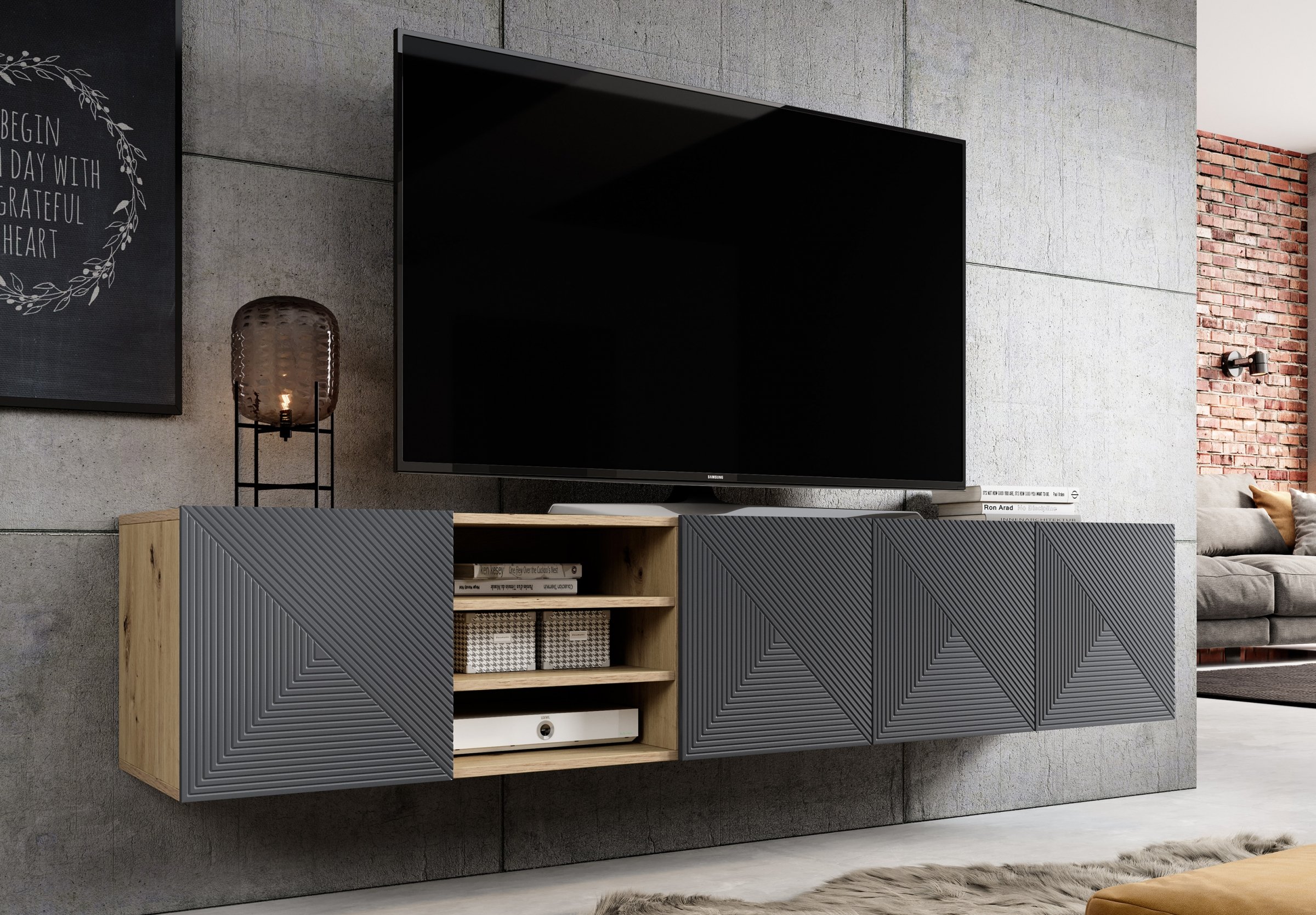 Zidna TV komoda s policama Asha 200 5D izvrstan je izbor za sve koji žele kombinaciju modernog oblika, prirodnog izgleda i praktičnog dizajna. Njezina dovršena izrada i promišljeni detalji osiguravaju da će u vašem domu djelovati i estetski i funkcionalno dugi niz godina.
