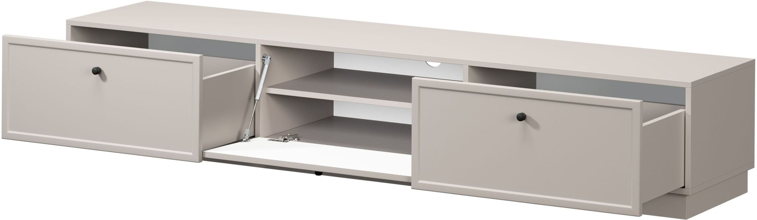 TV komoda Lorini 2SZ1K – Bogart idealan je izbor za sve koji žele spojiti estetski izgled, kvalitetne materijale i praktičnu funkcionalnost. Njena boja kašmira, čisti linijski dizajn i tiho djelovanje mehanizama stvaraju ugodno korisničko iskustvo te naglašavaju suvremeni karakter svake dnevne sobe. Sa svojom promišljenom izvedbom i kvalitetnom izradom, komoda Lorini bit će pouzdan dio vašeg doma dugi niz godina.