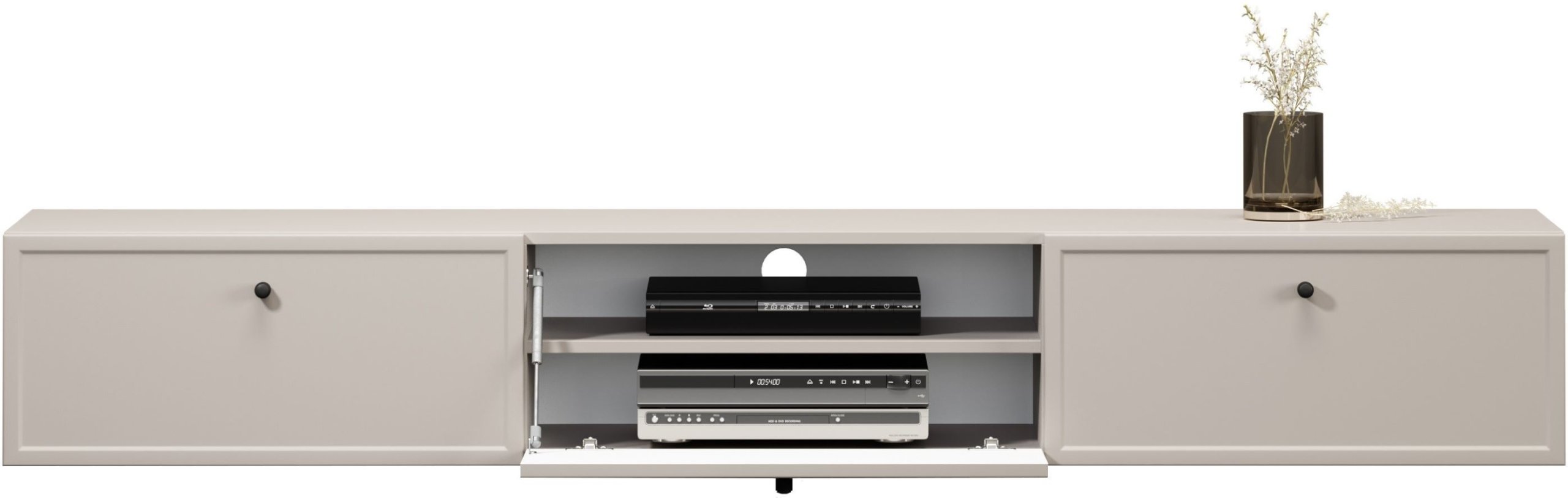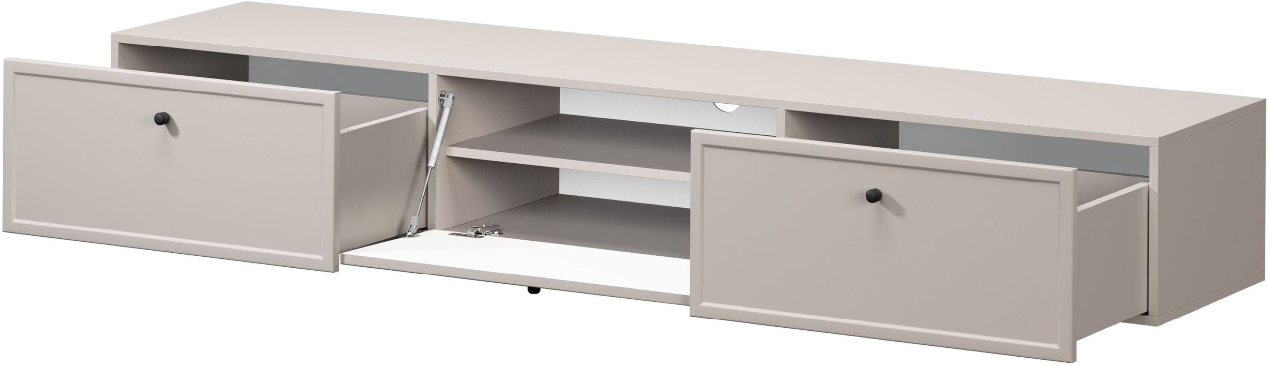Model Lorini 2SZ1K nudi promišljenu unutarnju organizaciju. Dvije prostrane ladice omogućuju pohranu daljinskih upravljača, kabela ili drugih dodataka, dok ormarić s jednim preklopnim vratima i unutarnjom policom pruža prostor za veće elektroničke uređaje. Cijeli unutarnji raspored omogućuje jednostavan pristup sadržaju i istovremeno održava uredan izgled dnevnog prostora.