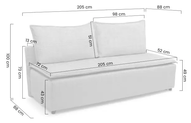 S dimenzijama 210x92x96 cm, dvosjed Firioza dovoljno je prostran da osigura udobnost, a istovremeno se lijepo uklapa u različite veličine dnevnih soba. Posebnost ovog dvosjeda je Euro mehanizam, koji omogućuje jednostavnu preobrazbu u ležaj veličine 205x146 cm. To ga čini savršenim izborom za posjetitelje kojima je potrebno prenoćište ili za one koji uživaju u udobnim večerima pred televizorom.