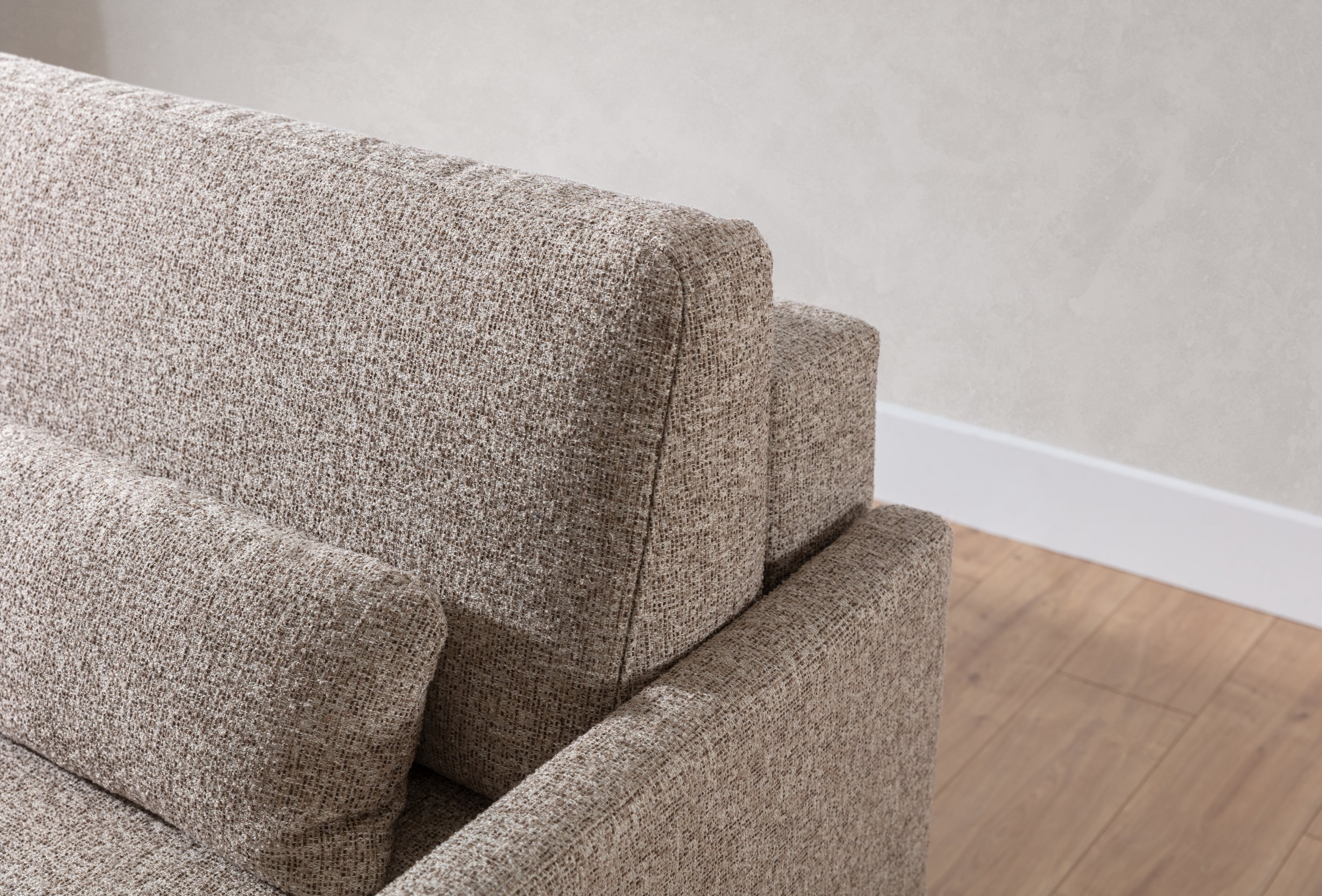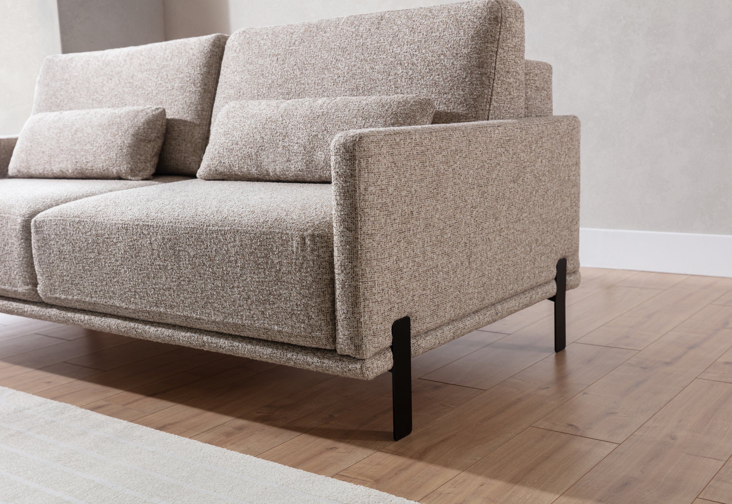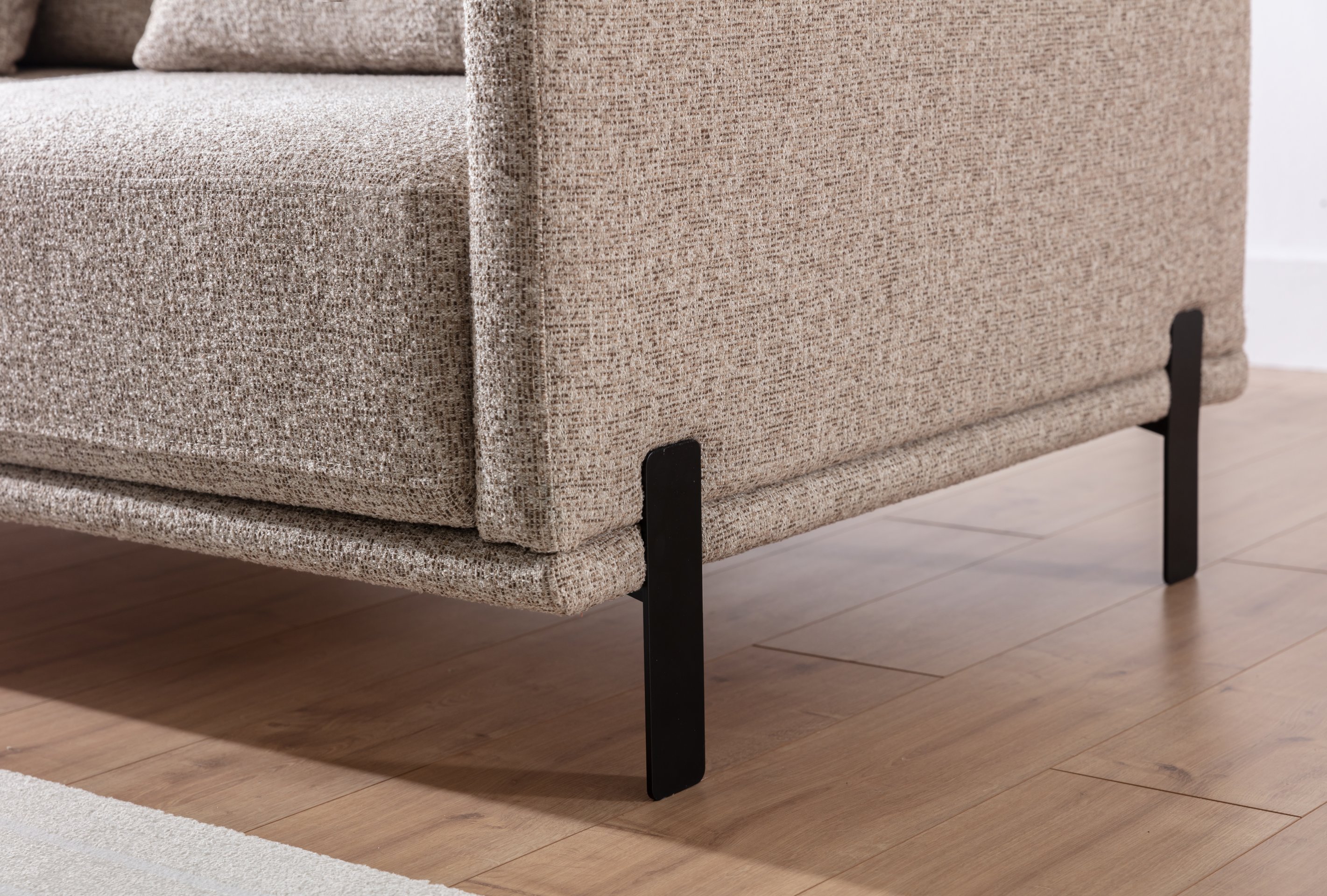 Boja kašmira savršeno se uklapa u suvremene trendove uređenja interijera, dok zlatne noge dodaju luksuzan izgled i eleganciju. S visinom nogica od 17 cm, komadi namještaja imaju praktičnu visinu koja olakšava čišćenje i održavanje prostora.