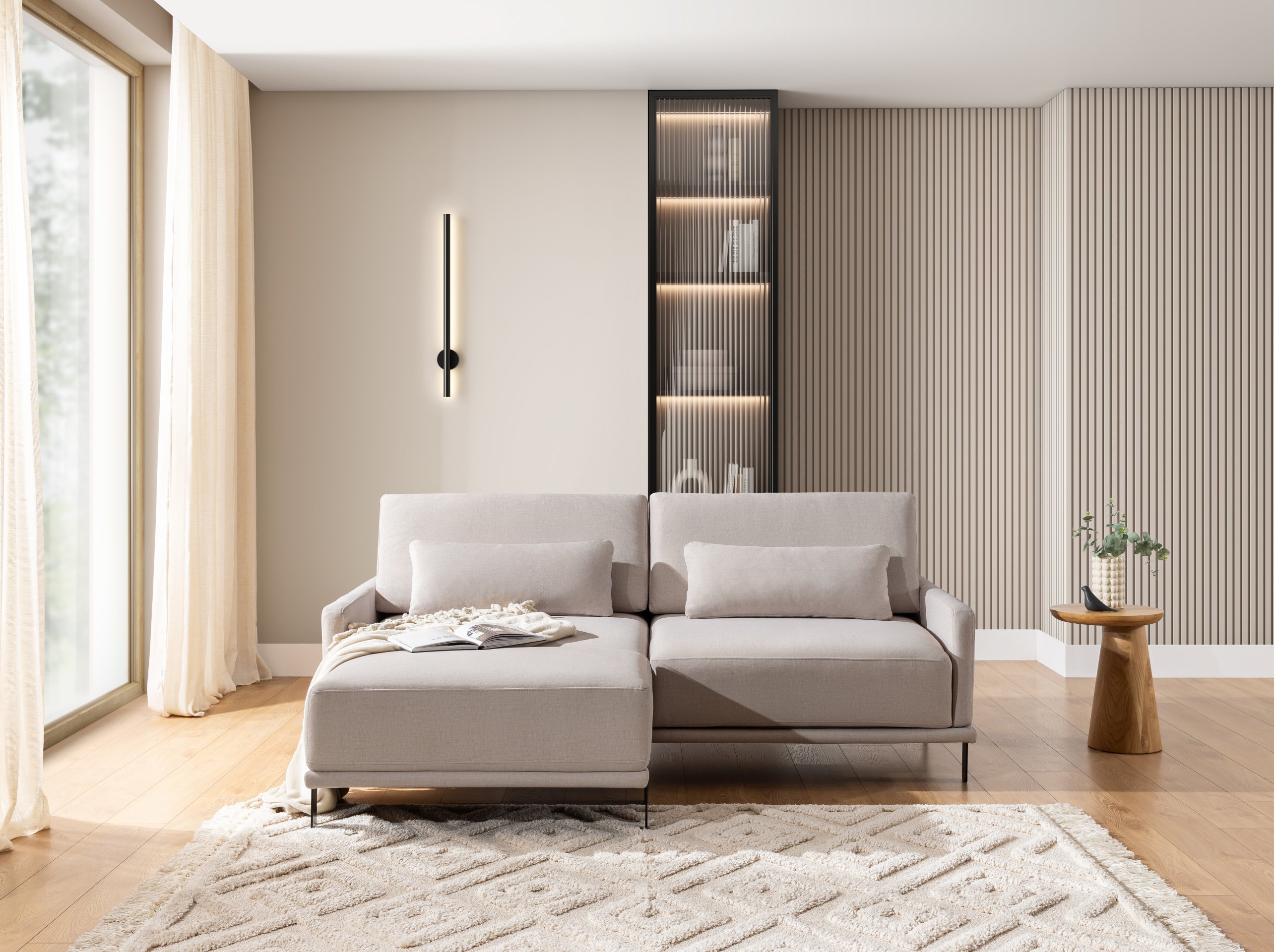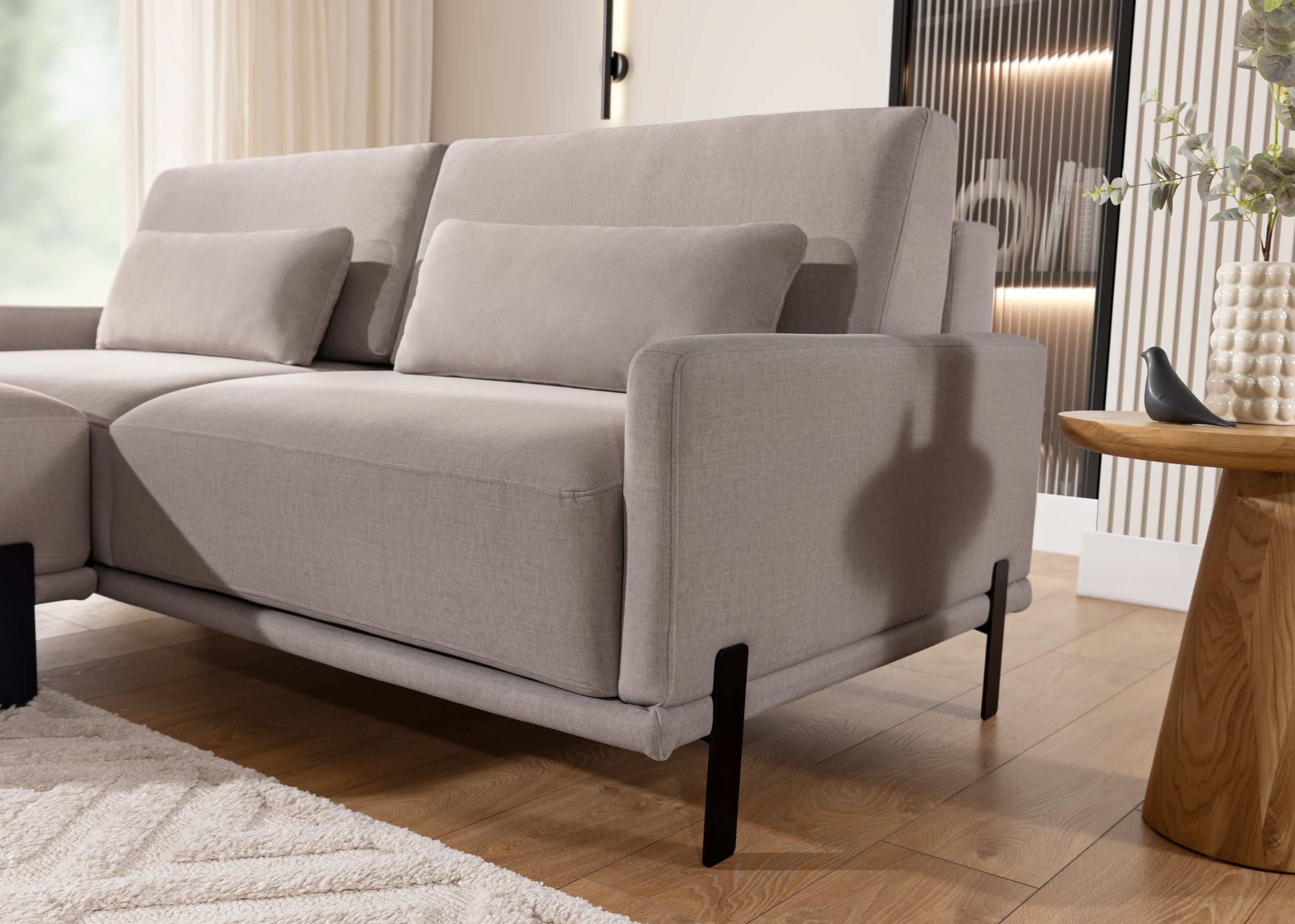 Elegancija: metalne crne noge visine 12 cm dodaju moderan dojam, a ujedno omogućuju jednostavno čišćenje ispod namještaja.
