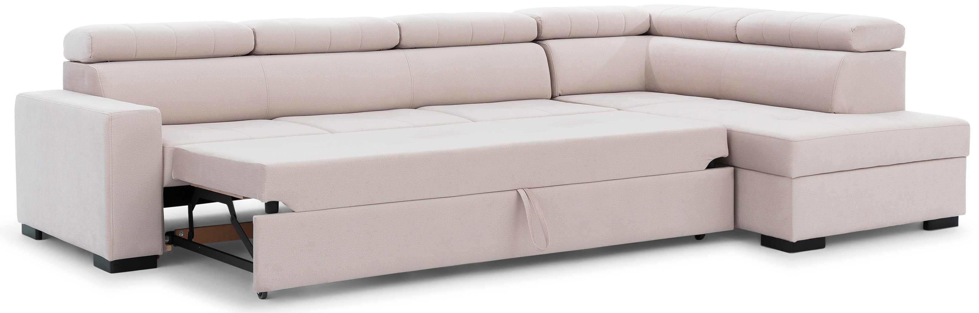 Proizvedena u priznatoj tvornici Garniture Bogart u Bosni, Modeno Maxi dizajnirana je za dugotrajnu uporabu. Čvrst okvir od drveta i iverice osigurava stabilnost i izdržljivost, dok vrhunska tkanina omogućuje jednostavno održavanje i dugotrajan sjaj. Zahvaljujući naprednom mehanizmu Dolphin, garnituru možete jednostavno pretvoriti u prostrani ležaj dimenzija 265x126 cm, što je idealno za goste ili udobnu filmsku večer.