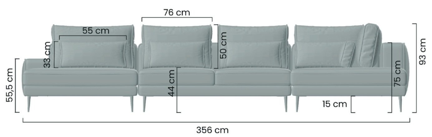 Nicole U ima dimenzije 356x200x93 cm, što znači da nudi dovoljno prostora za cijelu obitelj i prijatelje. Izrađena je od kombinacije drva, iverice i visokokvalitetne tkanine, što osigurava izdržljivost i dug vijek trajanja. Tkanina Paris u svijetlosivoj boji ne samo da dodaje dašak modernosti, već je i jednostavna za održavanje, što je ključno za svakodnevnu upotrebu.