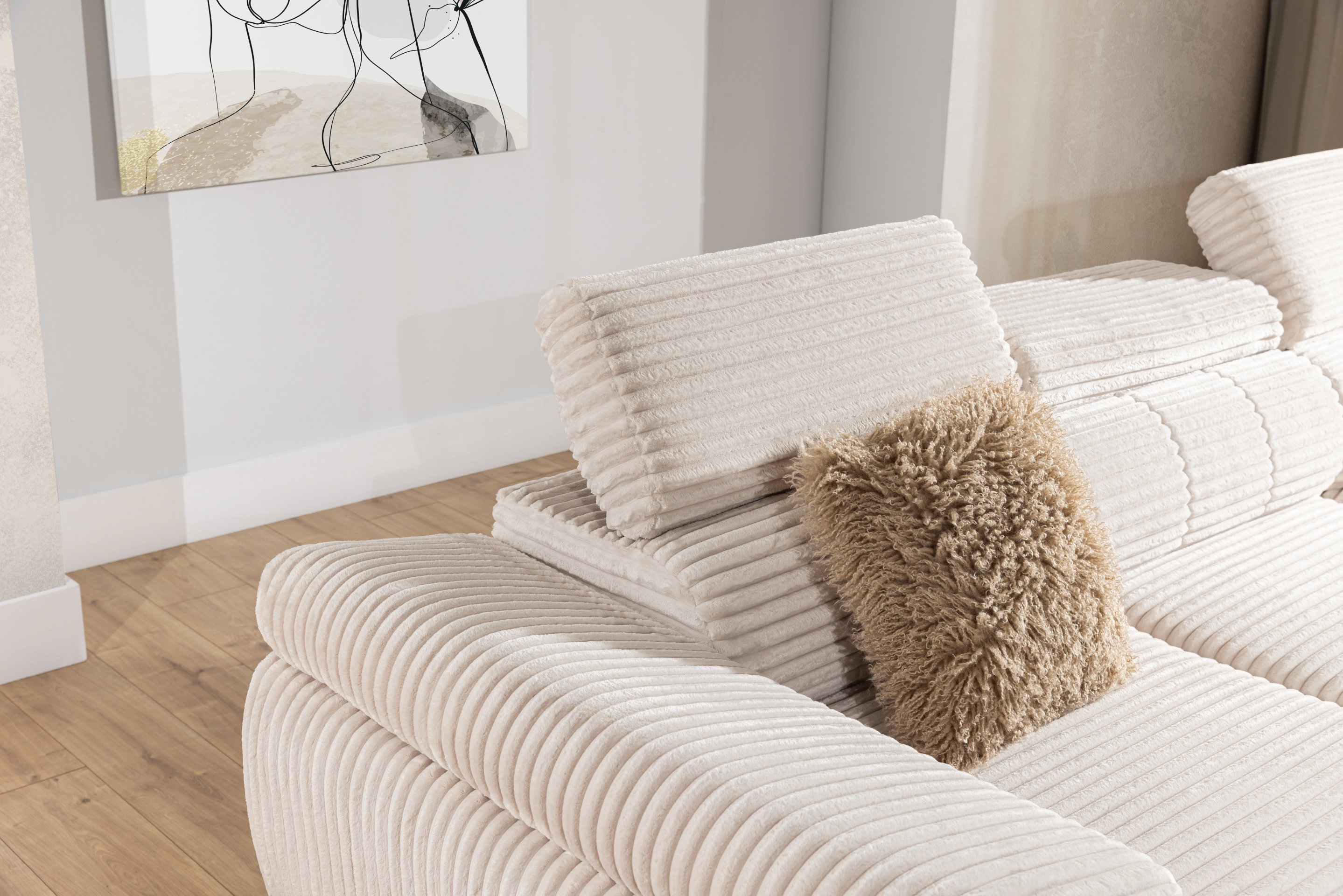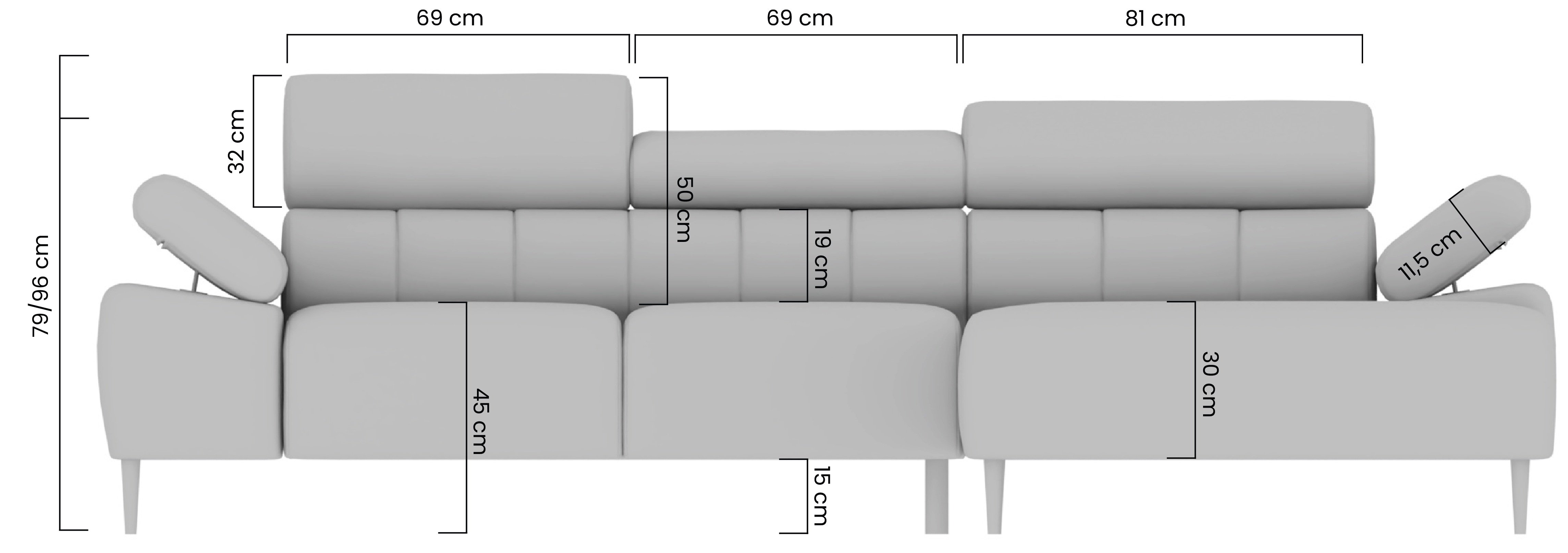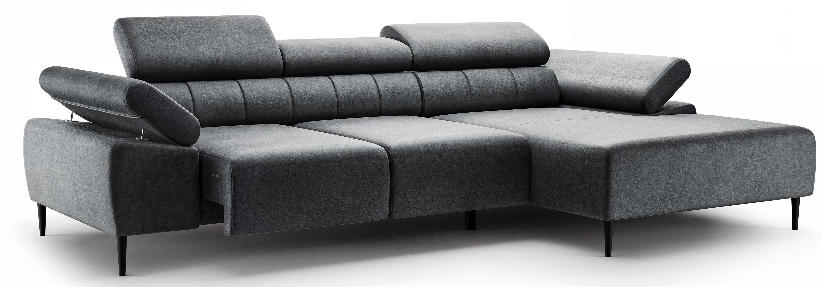 Jedna od ključnih prednosti ove garniture su podesivi nasloni za glavu i ruke, koji omogućuju potpunu prilagodbu vašim potrebama za udobnošću. Osim toga, sjedište ima električnu funkciju razvlačenja, koja omogućuje jednostavno pretvaranje prostora za sjedenje u još opuštenije okruženje.