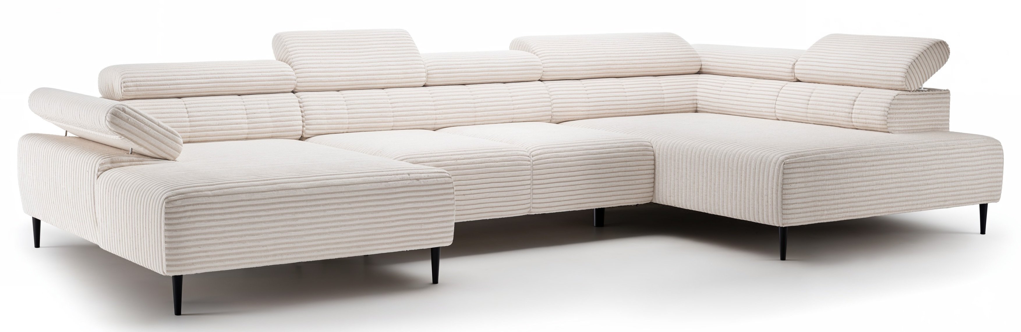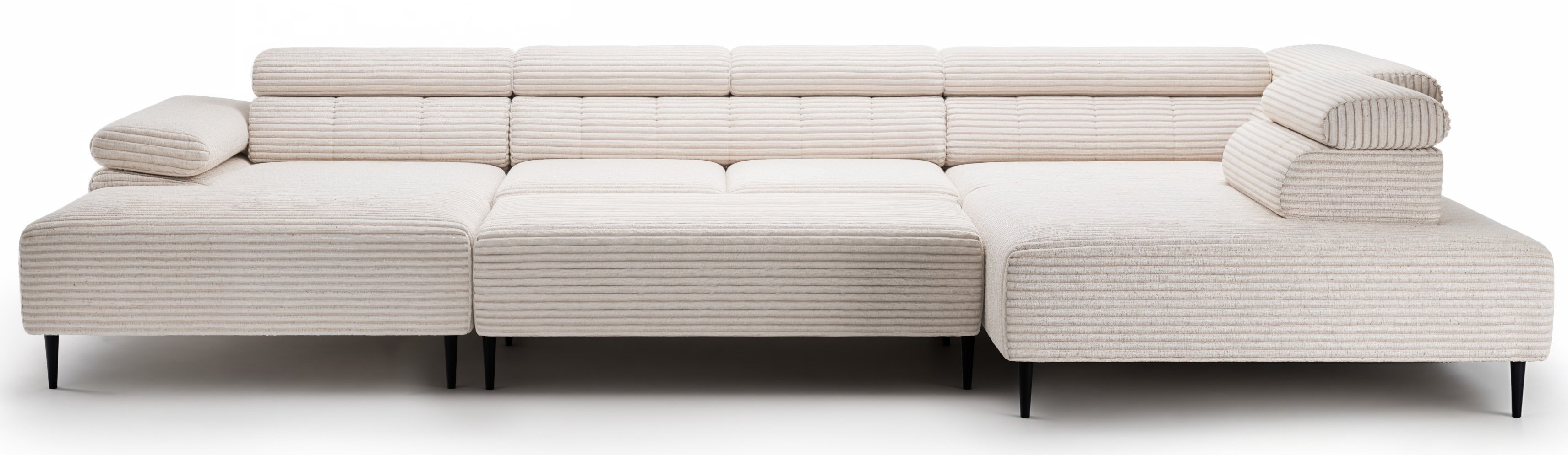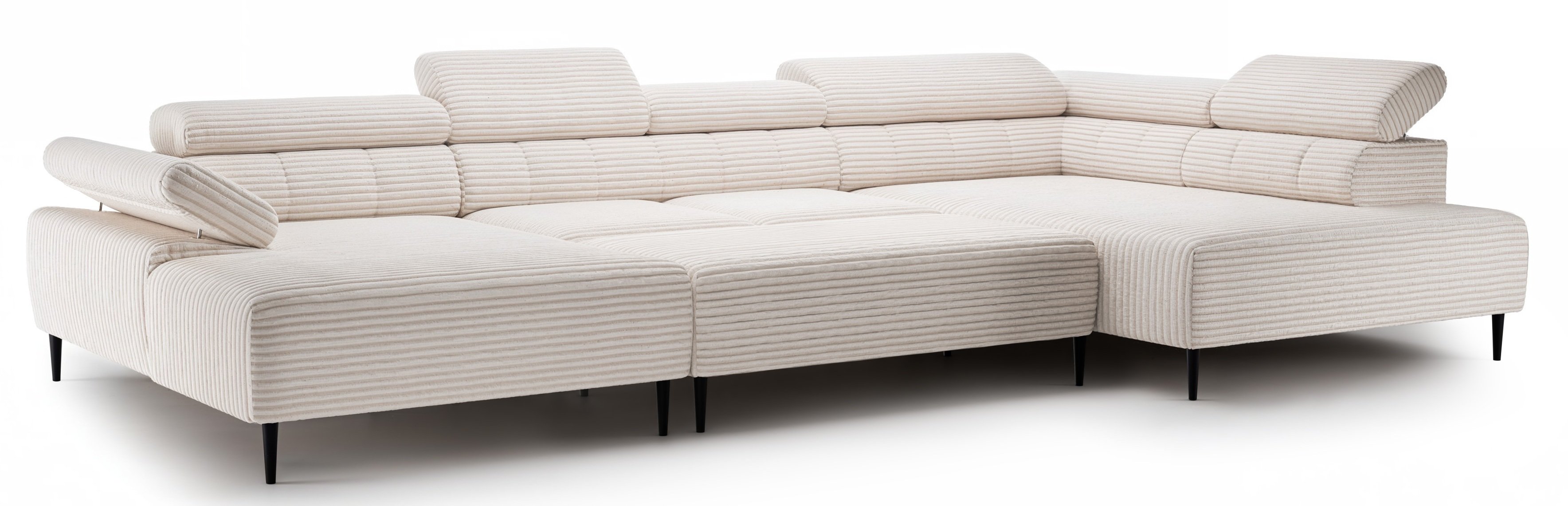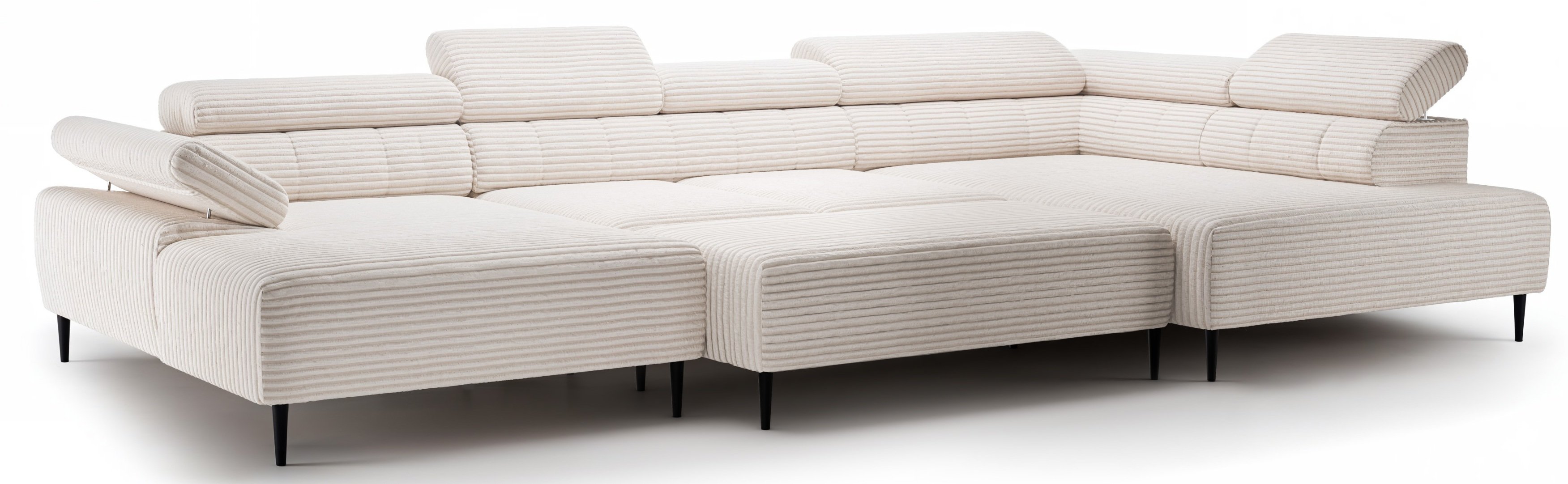 Kutna garnitura opremljena je podesivim naslonima za glavu i rukonaslonima, što omogućuje prilagodbu prema vašim željama. Električno rastezljivo sjedalo i podesivi naslon sjedala osiguravaju da će svaki trenutak na njoj biti nezaboravno udoban.